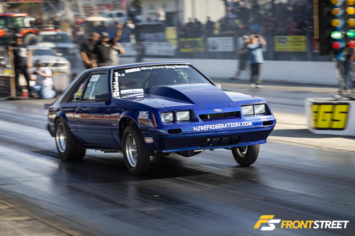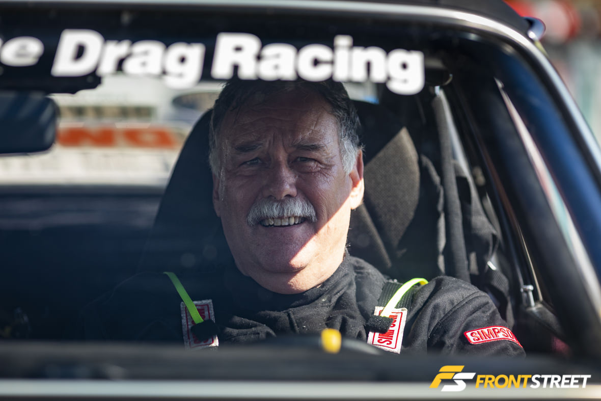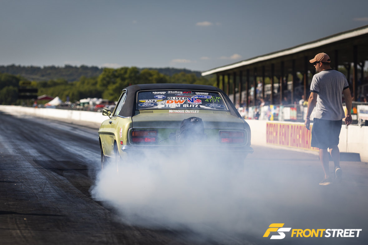 Remember our buddy Nick Bacalis, engine builder at Bischoff Engine Service, and subject of one of Front Street’s most popular articles? Well, the engine in this machine has since been updated with electronic fuel injection and a big whiff of nitrous, and Bacalis has been whacking the throttle whenever possible. He recently won the NMCA’s World Finals event in Street Outlaw, and crossed over here to NMRA to run in the Street Outlaw class here. With Holley’s Dominator engine management system on top of the engine and Induction Solutions nitrous feeding plenty of squeeze, Bacalis has been running solidly in the 4.30s since getting a handle on the car. Interestingly enough, he handles all aspects of engine tuning, and prior to this engine had never run nitrous before. He told me that the car makes so much torque it comes up on the tire and will basically ride the wheelie bars and not come down until after he lifts off the throttle at the eighth-mile. I looked at the data from his logger and will say that he’s not lying.. the graph was pretty wild. He also says there are 4.20s lurking in this car, possibly by the end of this season.