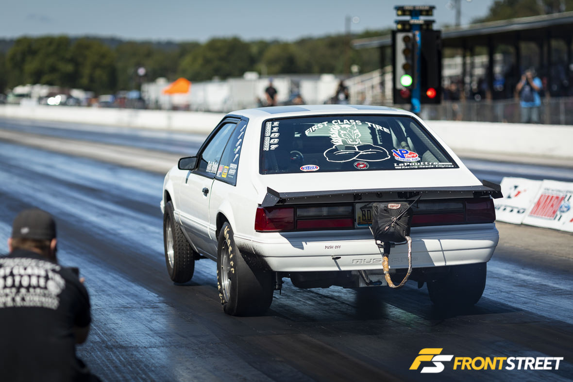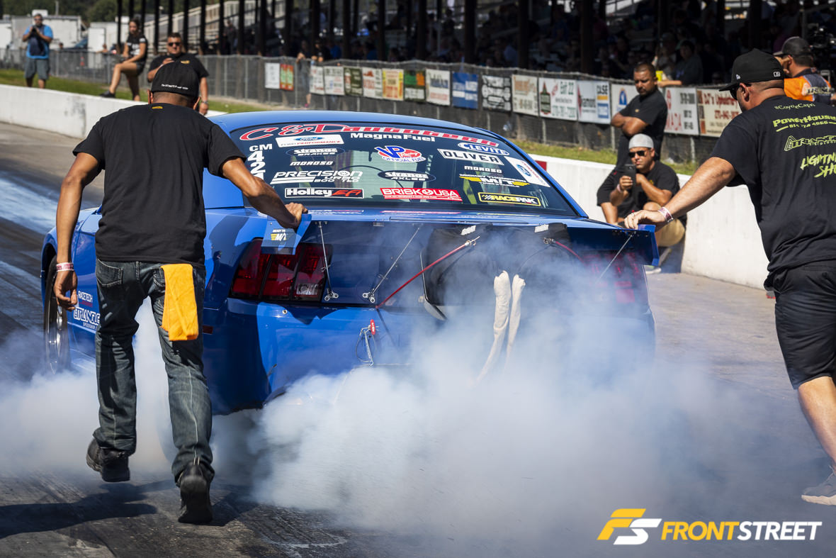 My longtime friend Mike Gucciardo made the trip down to compete in Limited Street. Despite being seriously outgunned by the power-adder cars in the class—many of whom had a second or more on him—Goose gave it his best shot. He took the round win over John Keller in the first round when Keller didn’t make the call, earning his very first round win ever in the process. When I went to talk to Goose in the pits, he was on cloud nine, despite getting knocked out in the second round on a redlight start against class record-holder Sondra Leslie. He has some upgrade plans for the winter, with lots of testing on tap.
