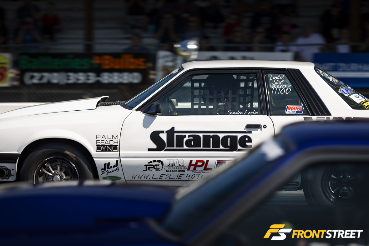 Alton Clements (foreground in above photo) had quite the weekend. After picking up this new-to-him car from Manny Buginga, he qualified second behind class champion Andy Manson in Street Outlaw. During qualifying, air got behind the Lexan window on the driver’s side of the car, pulling the window out and breaking the frame right off the door. One $140 trip to the swap meet later, Clements’ team was modifying the steel stock door and remounting the hinges to it so he could continue to race. Then on Sunday, he knocked out Travis Franklin and Nick Bacalis on his way to the final round against Manson. When the tree dropped, a holeshot launch secured Clements’ win at nearly 168 mph by a mere 3.72 feet. Oh, and the swap meet guy made him buy the pair of doors, so I think there’s a passenger side Fox body door for sale in South Carolina.