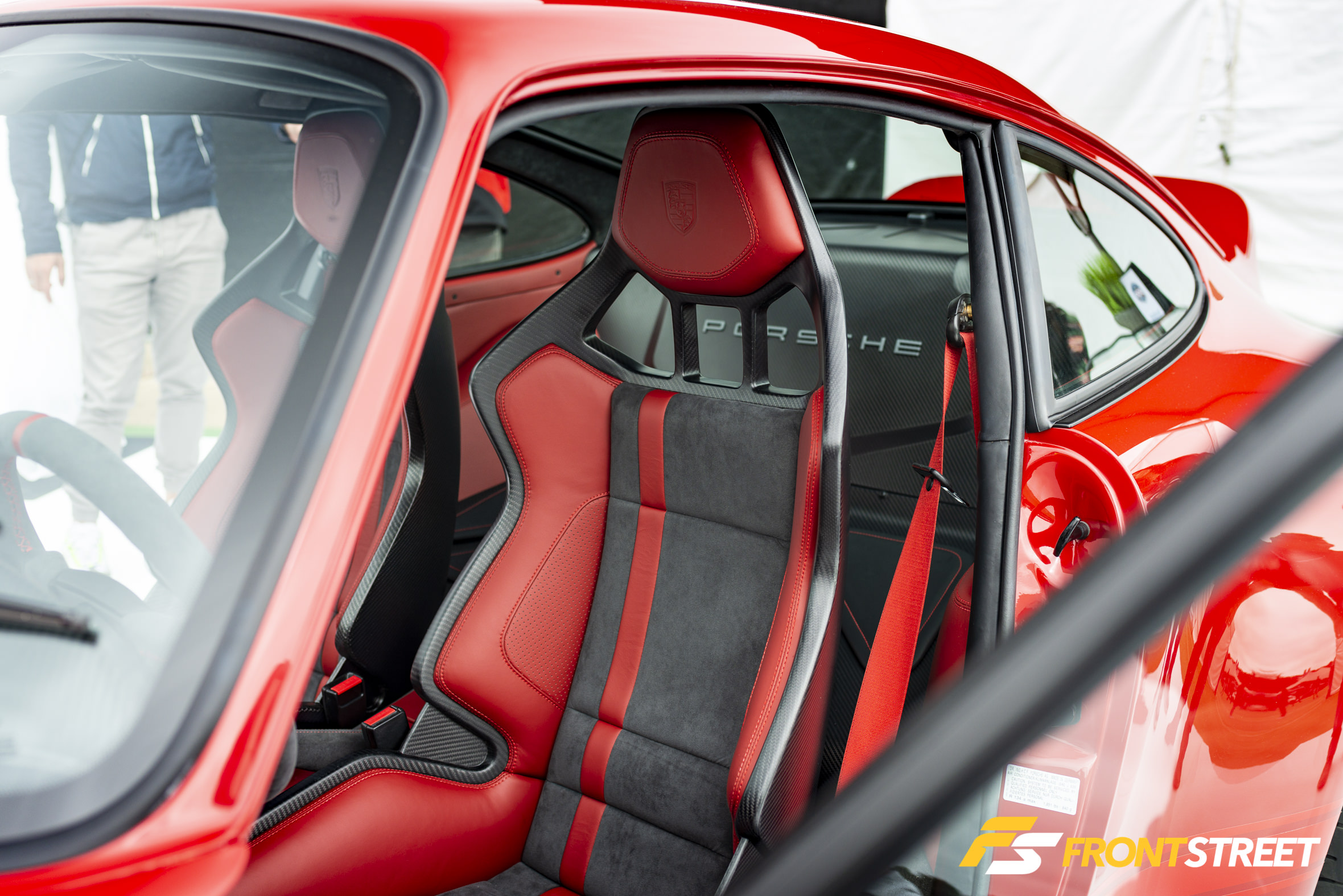 Contrasting the decades of history presented on track and in the paddock, the company unveiled its next generation of 935 911 at the event. Heavily based off the borderline-unattainable 991.2 GT2 RS, this exclusive single-seater non-homologated clubsport racecar is limited to only 77 production units. Created as a tribute to the famed ’79 Le Mans-winning “Moby Dick” Porsche 935/78 Longtail racecar of yesteryear, the iconic Martini livery colors are emblazoned front to rear on the widened aerodynamic 911. It’s clad in carbon fiber aerodynamic pieces to keep the car planted, and generates 700 hp from its twin-turbocharged rear-mounted boxer engine. Because it is not road legal, the front end displaced headlights in favor of sleek, smooth lines to reduce drag, while the front bumper gained larger openings to aid in cooling the numerous heat exchangers. It’s refreshing to see a modern take on nostalgic aerodynamic treatments executed so properly. Amidst the electric future of the Porsche lineup, it’s nice to see they’re still properly outfitting the classic petrol head.