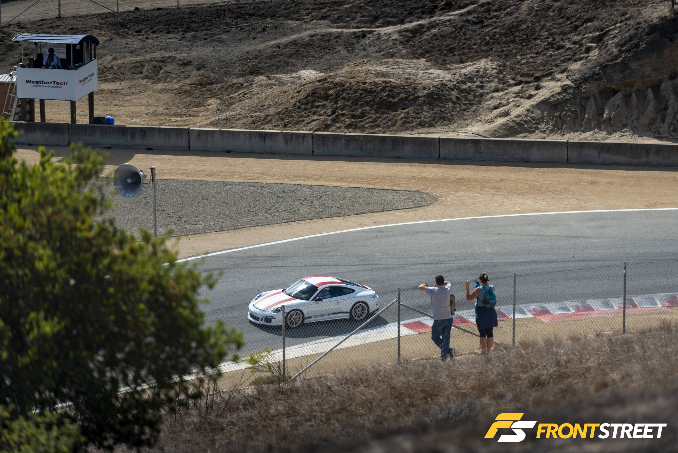 Never before have I witnessed a car lapping a circuit with so much blistering outright speed. Officially, it is the fastest car to lap some of the world’s most demanding racetracks including Spa-Francorchamps in Belgium, and the famed Nordschliefe at the Nürburgring in Germany—but what is it actually? Well, nothing more than an R&D project for Porsche Motorsport, really. The triple-champion Porsche LMP Team was having trouble passing the time after Porsche left the World Endurance Championship, so they took one of the retired 919 racecars, binned the rulebook, and decided to answer the age-old question of what lap times a top-tier racecar is capable of recording without pesky regulations slowing it down. The aero on the Le Mans-winning car was altered; the power unit’s output was drastically enhanced, and with no limitations on tire or fuel makeup it was unrestricted in every aspect. It is, essentially, time attack at the highest level and Porsche brought it to Laguna Seca! Not a demo version with no engine meant for display. No, they brought the real deal, and even announced over the loudspeaker that it could potentially attempt a new track record before the end of the event. With only a half hour of exhibition laps per day, time was of the essence, and with half of those sessions spent trailing a camera car for Porsche’s own media use later, that left even less time to dial in the chassis to the California raceway. Nevertheless, on the final day, the team gave three different drivers the chance to attack the course at speed, and give their best shot at the record. Because conditions were less than favorable under the hot mid-day sun, most of those laps were aborted before crossing the finish line. So while no new track record was set, I did get to stand on the pitwall and experience the 919 Hybrid Evo slice past me at over 190 mph—a feat achieved in the relatively short distance from Turn 11 to the Start/Finish line along the pit straight. That’s massively quick for such a short distance. Truly a remarkable experience that capped off a perfect event!