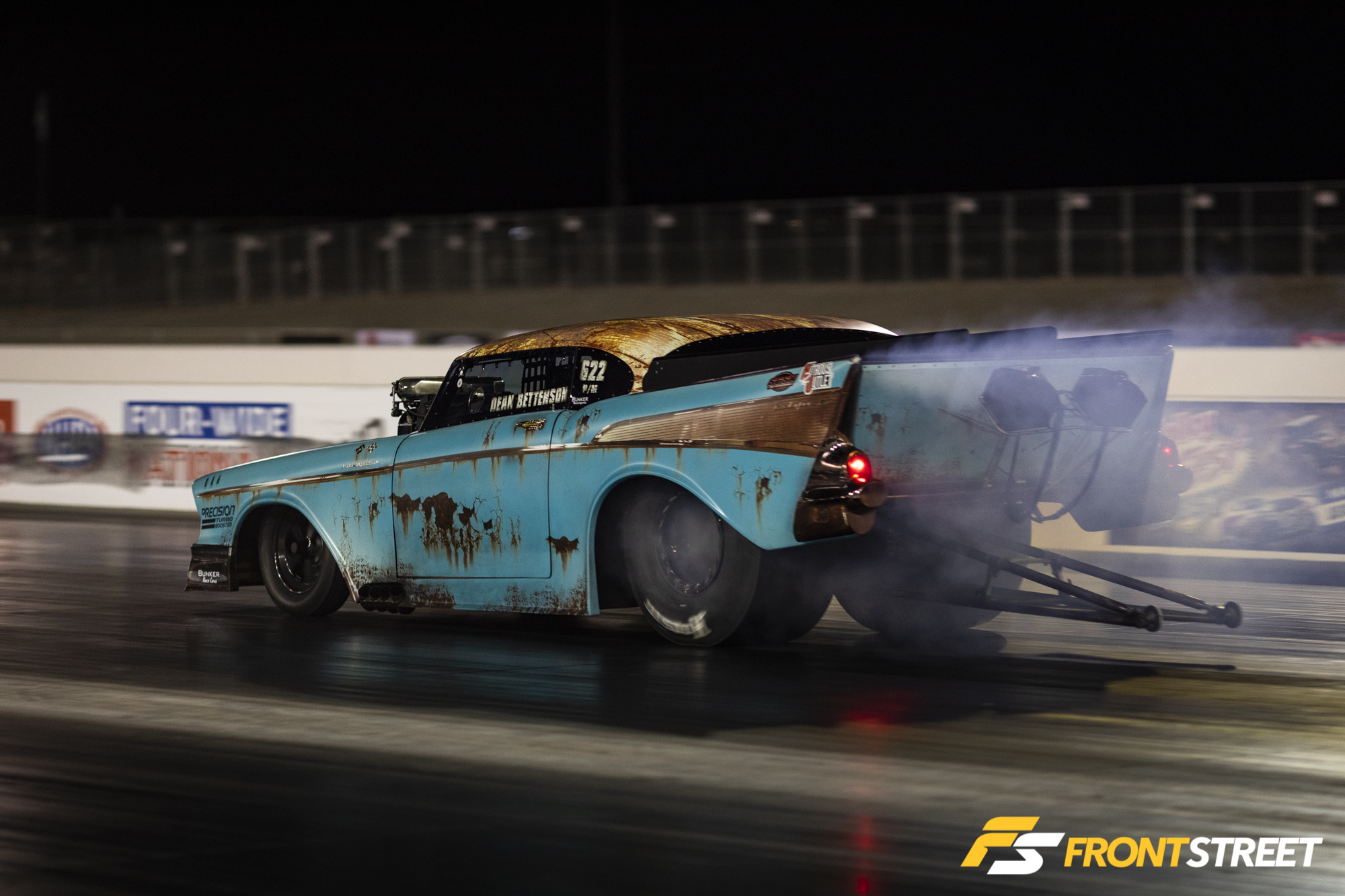 Busting into the three-second zone under true Outlaw 10.5 rules this weekend, Greg Seth-Hunter made his mark in the GenX 351ci Coyote-powered MMR Mustang. The car becomes the world’s fastest Ford-powered car in the world on this tire, and Seth-Hunter went all the way to the semifinals against a field full of cars sporting 500-900+ cubic-inch engines. A loss in the semis against eventual class winner Mike Keenan didn’t dampen his spirits, though. You’ll get to see a mini-feature on this trend-setting combination over the winter right here on Front Street.