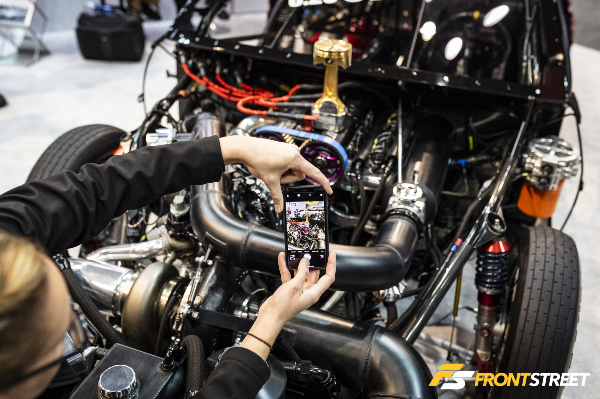 My good buddy Shane Tecklenburg of Tuned by Shane T—the leading MoTec tuner in the USA—held court in the Mazworx booth, talking about the team’s insane triple-compound-turbo SR20 engine they’ve designed to make 3,000-ish horsepower, from a 123 cubic-inch engine that develops around 100 horsepower in stock form. It was like listening to a mad scientist talk about pressure ratios and compound turbos and wastegate spring pressures and fabrication… all based around the billet Mazwork block. I could stand and listen to Shane talk all day, and even though I only pick up on about half of what he’s discussing, it’s fascinating stuff. Shane’s involved in so many different engine and projects, from drag setups like this to record-setting land-speed liners and more.