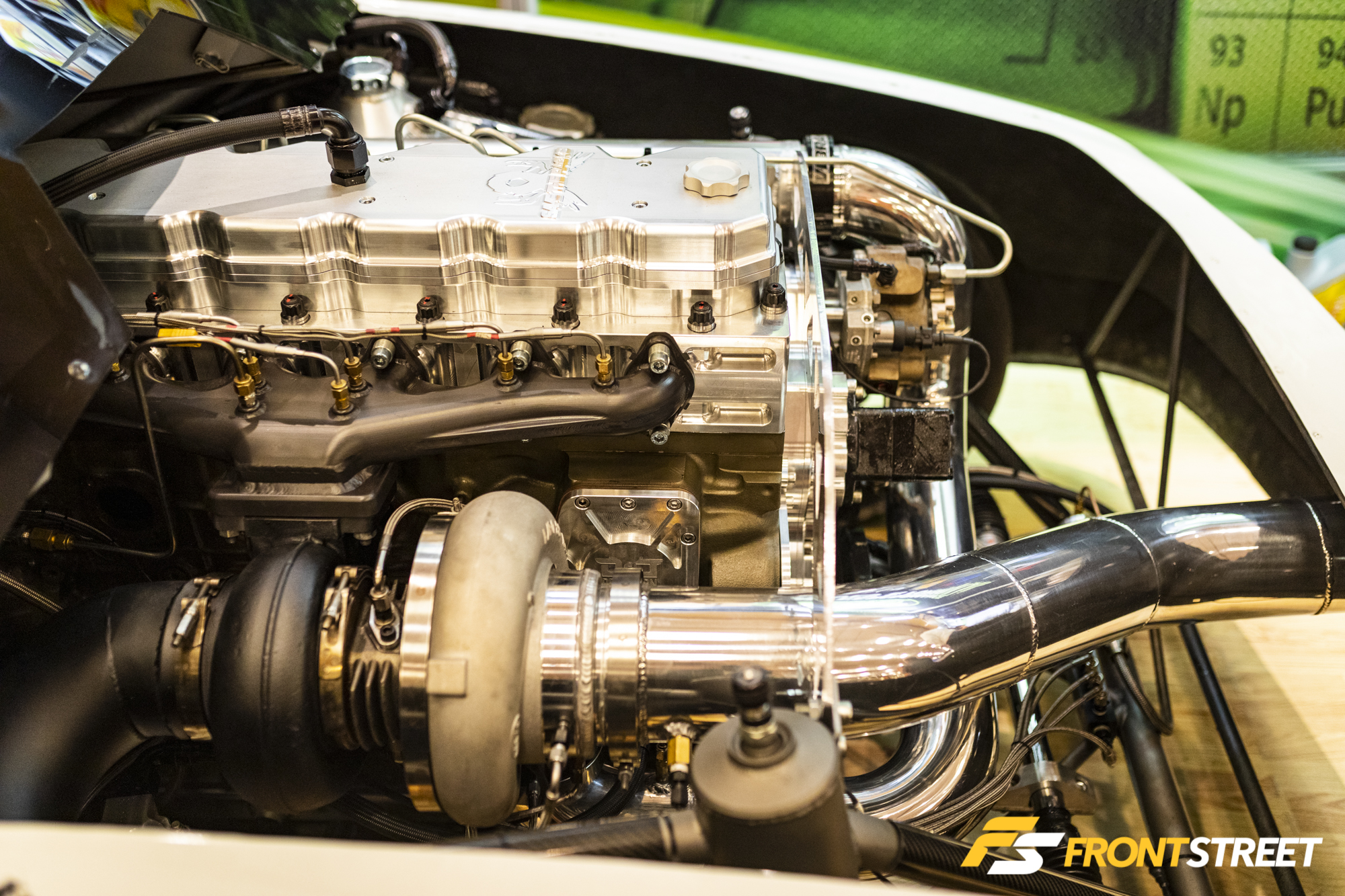 The 4.600-inch bore-space small-block billet Chevy engine from Visner Engine Development is seriously impressive. Dave Visner and his team have developed this engine for classes like Outlaw 10.5, drag radial, and other outlaw-style drag racing classes. By shifting the small-block Chevy architecture from its traditional 4.400-inch bore centers to the larger 4.600-inch spacing, more room becomes available for larger valve sizing and larger bores, yet remains considered a small-block for rules purposes. The block is available in a traditional water-cooled design, or solid for ultimate durability in drag applications where methanol fuel is used. The cylinder heads were designed in-house as is the intake manifold and rocker setup, and configuration like ring package, stroke, and bore size are all determined with the customer’s input depending on the type of racing the engine will be used in. It will measure out anywhere from 460 to 560 cubic inches depending upon internals, with a max 4.400-inch bore and 4.625-inch stroke. 2.380-inch intake and 1.680-inch exhaust valves mean big power; we understand the engine to be capable of nearly 4,000 when all is said and done. Serious power from an engine shop that knows how to make it—Visner’s expertise ranges from NASCAR to Pro Stock.