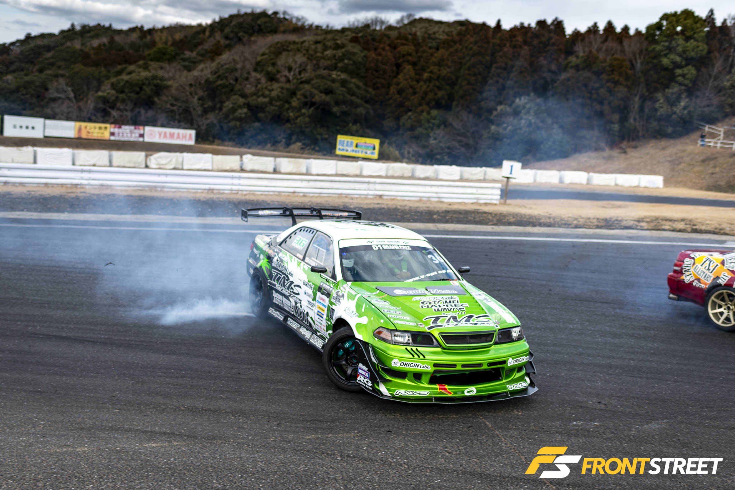 Keep in mind that the temperature was circulating around the 27°F mark on this day in Mobara, so it was pretty darn chilly outside, but that didn’t deter any of the local drifting faithful from coming out for the demo. The covered paddocks were almost completely full of wild Formula DRIFT Japan and D1 Grand Prix professional drift cars, and any of the empty spots were shortly taken by one of the pro cars arriving on rollback trucks.