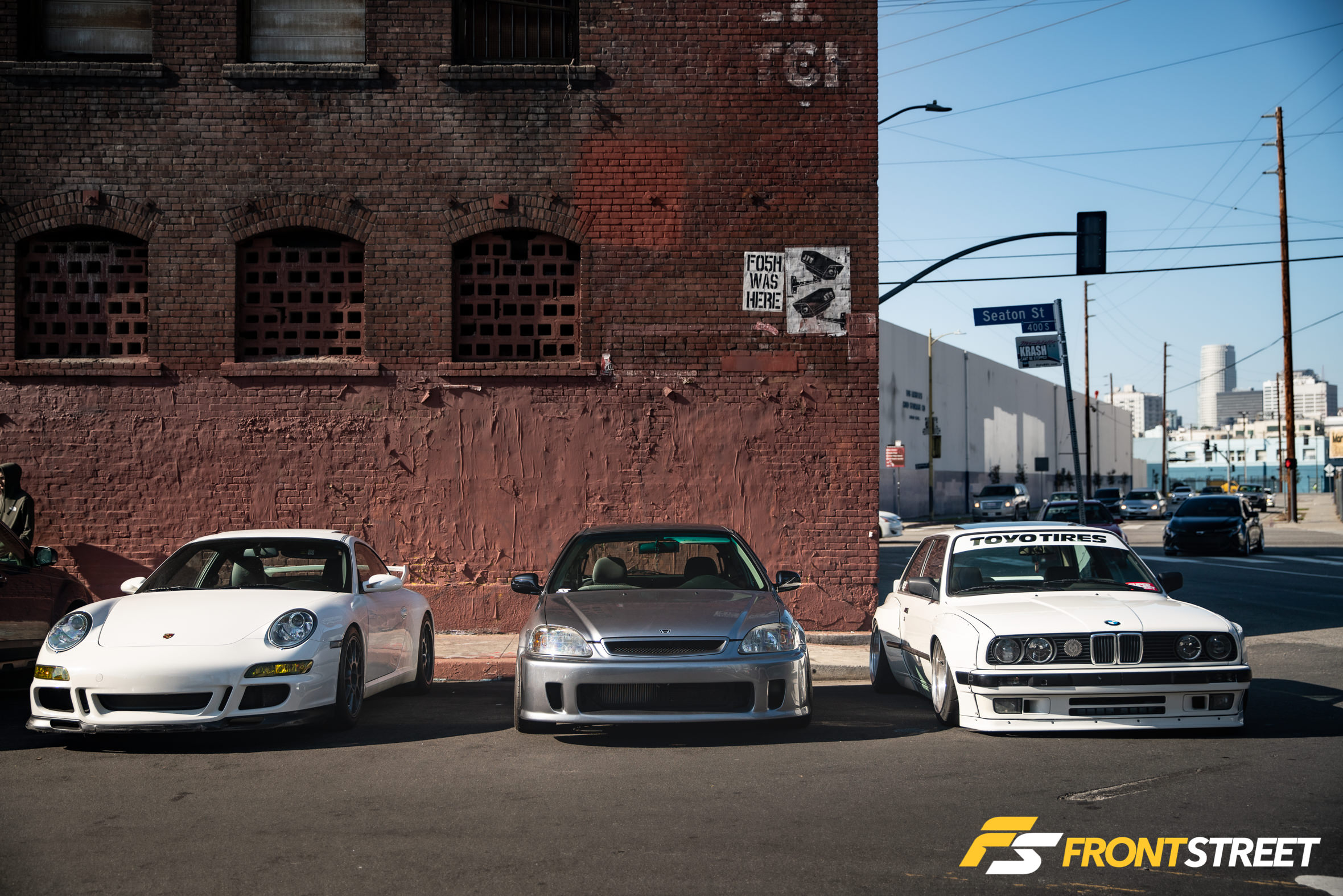 Although the start time was listed as 8 am, cars were rolling in deep caravans as early as 7:15 am. Hordes of vintage BMW 2002s, Porsche 911s, bagged imports, and some JDM fever were all present and ready to rock. The yard filled up quickly and to the brim. Cars started to park on the upper level of The Container Yard. Once that filled up, people started to park their vehicles in the adjacent alley, and that filled up just as quickly. So much variety filled the streets, and that was probably my favorite part. I could catch up with my Euro and JDM friends all at once. Because of the diversity, I was also meeting other owners with unique rides such as Ricky with an Austin Mini pick-up truck—insane!