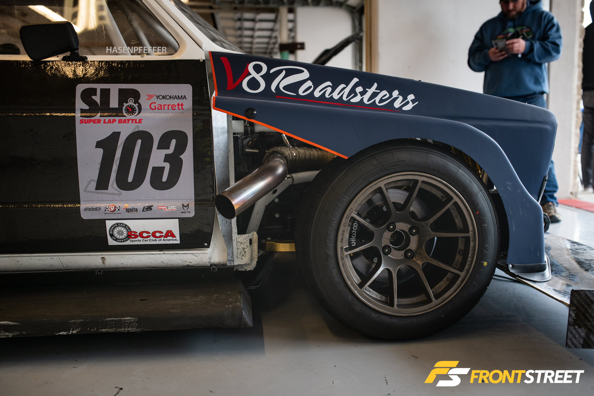 Due to the openness of its rulebook, Super Lap Battle allows for the creation of some very unique builds. One of the vehicles that received a lot of attention throughout the weekend was this Volkswagen Rabbit powered by a turbocharged Honda S2000 engine.