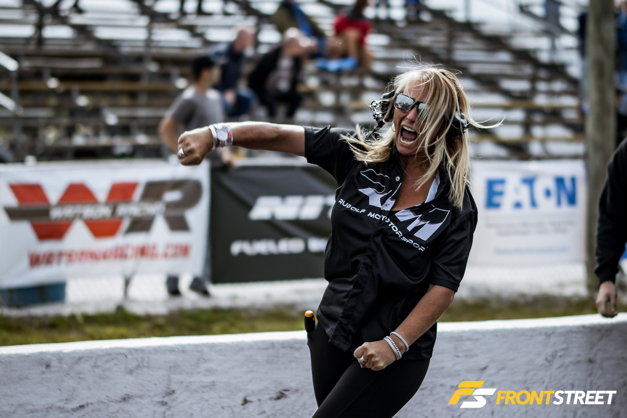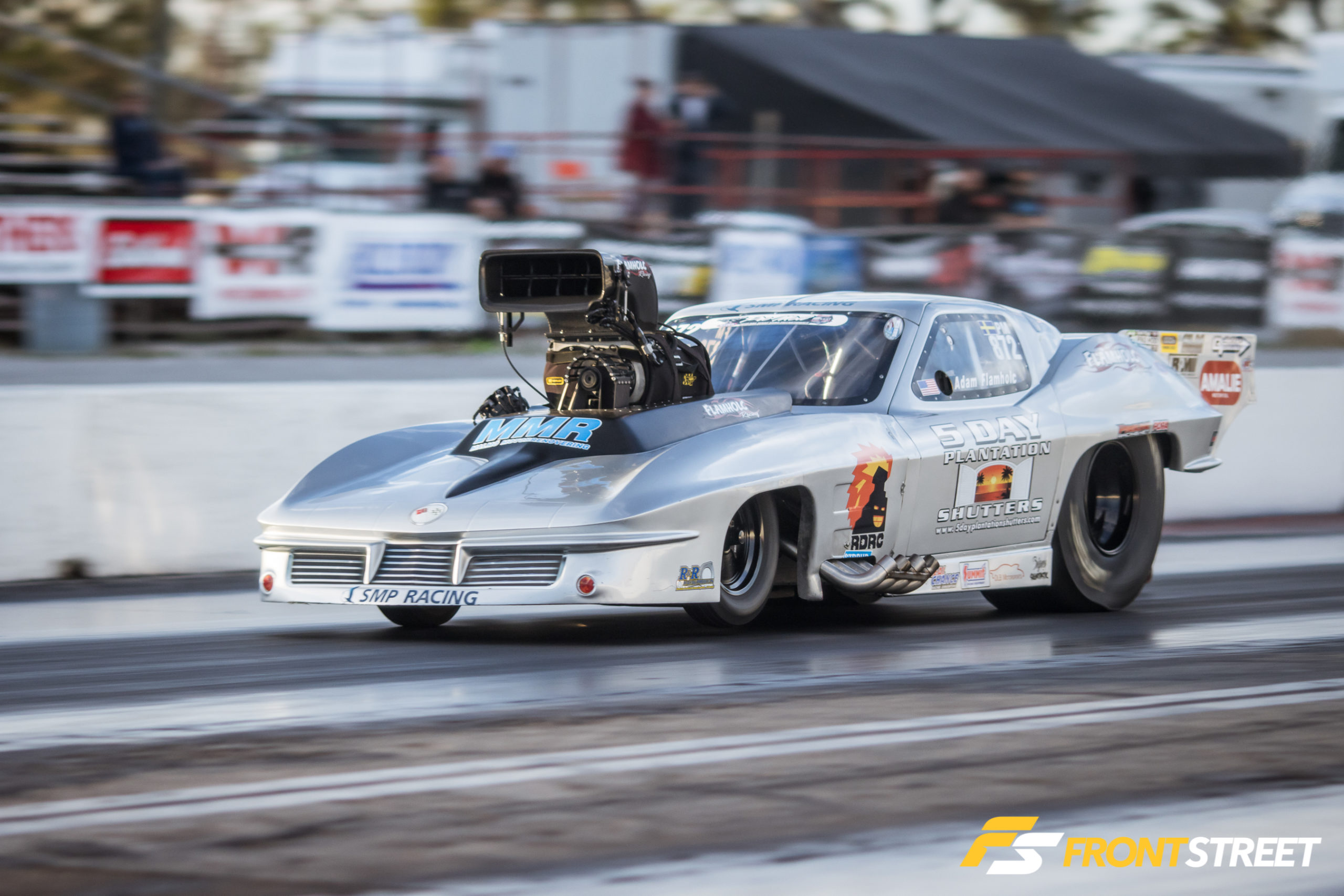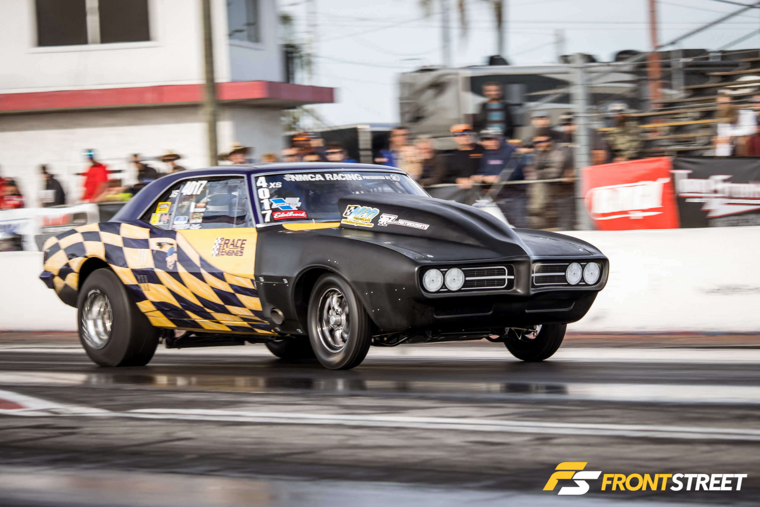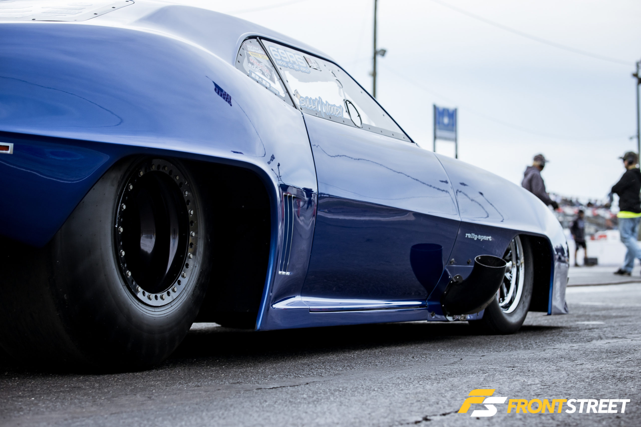 Another surprise appearance in eliminations was Jeff Rudolph’s Camaro, cut down a tire on the top end, which forced him into a foam timing block and demolished the nose of his beautiful car. But his crew—along with many others like Mark Woodruff, Craig Sullivan, their teams and a few other good samaritans—thrashed to ensure the black beauty was back on track for Q3, albeit a little less beautiful. Jeff held the top speed of the weekend, cresting 215 mph.