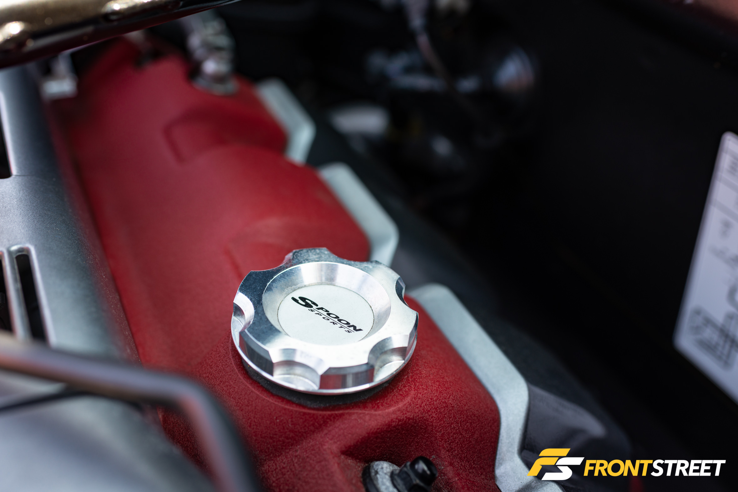 Tucked behind the front wheels is a gorgeous set of Spoon Sports brake calipers with Spoon Sports pads to assist in braking.