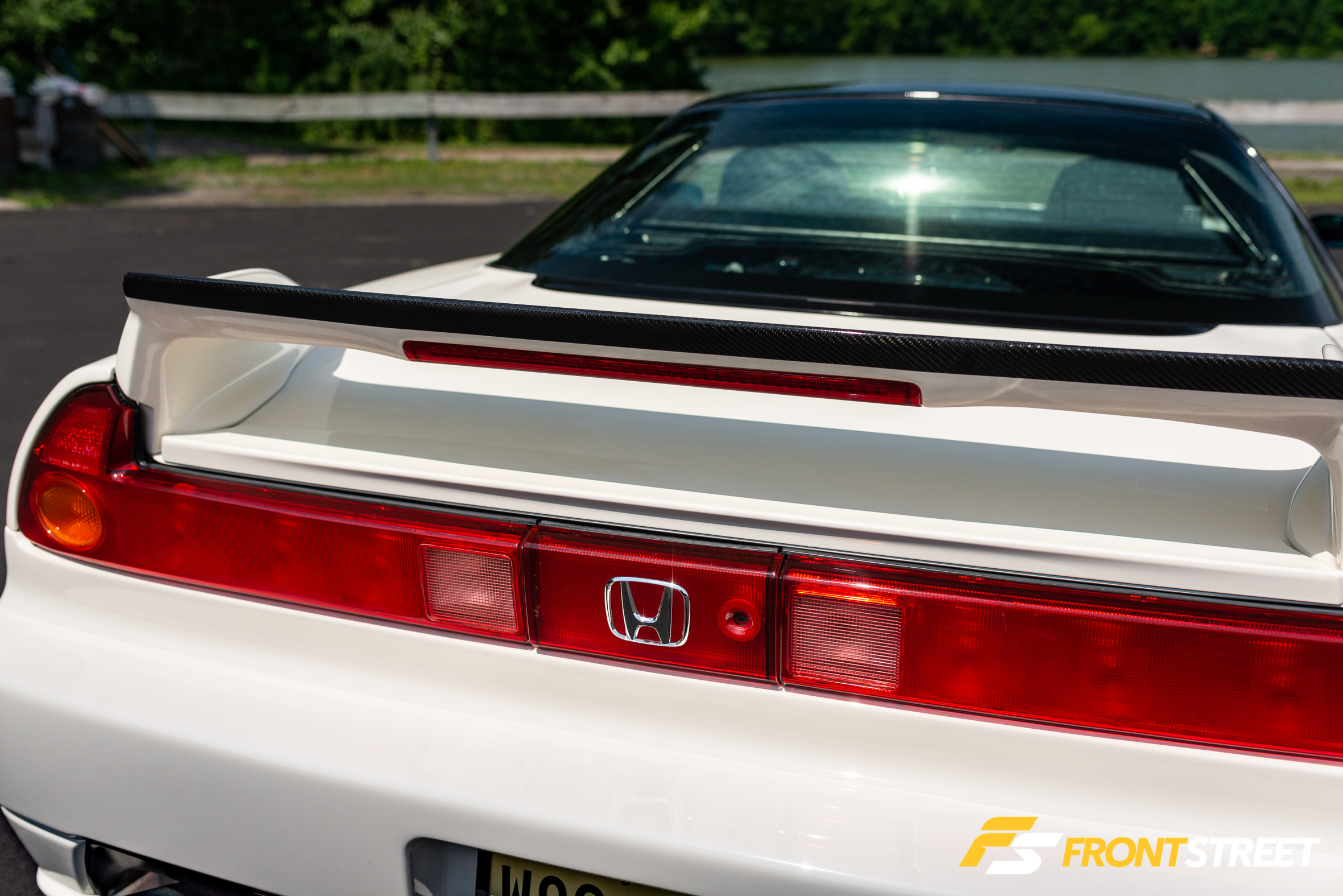 For the elegant Championship White coat of paint practically dripping off of almost every inch of the car, including the enchanting Zoom Monaco mirror inside, he enlisted the help of his painter Raul at Litos Customs in Central Islip, NY. Raul also refinished the pillars, roof, and rare Spoon Aero mirrors in Honda Berlina Black paint to match that of the NSX-R in Japan.