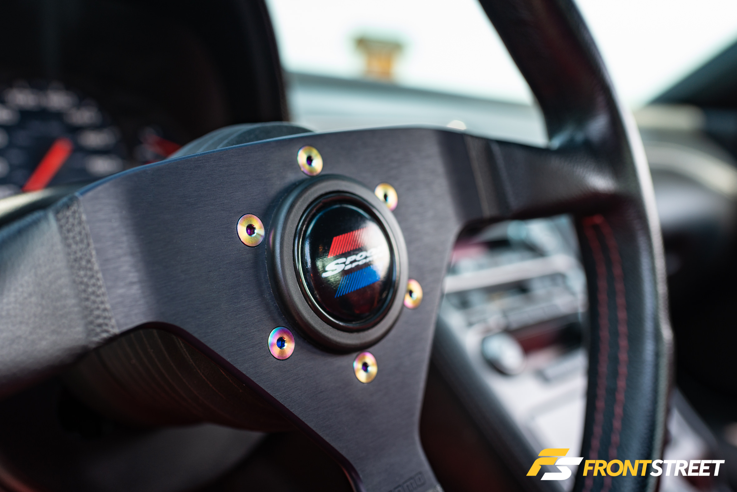 The exterior subtlety takes on a new level with JDM NSX fenders and quarter panels, which are a bolt-on affair with the NSX, thanks to its aluminum construction. Need a new quarter panel? Just bolt it on. The new fenders and quarter panels were crucial for cleaning up the look of the project by eliminating the amber and red side marker lights from the US version. To finish off the outside, Gomez procured genuine Championship White NSX-R headlights, JDM taillights, and OE JDM Honda emblems.