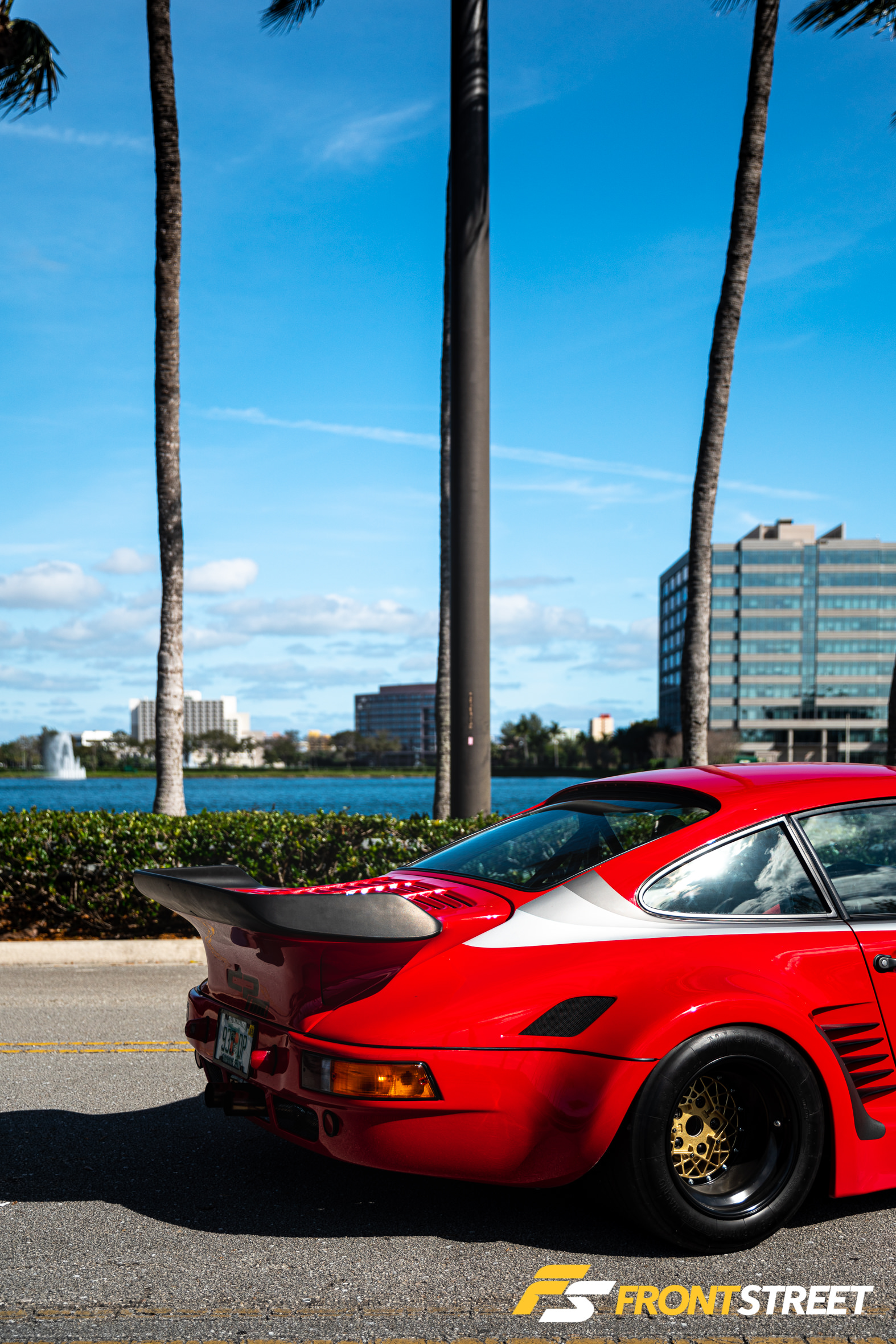 I had the DP lined up in the middle of the street, and we witnessed many men drive by with a 90-degree neck twist, drooling over the sight of this raced-out Porsche. One of the things you notice right off the bat is the beautifully-sloped front end. The silver stripes lead you to the side of the vehicle, where you notice the Group C three-piece magnesium BBS wheels that measure 15×9-inch and 15×13-inch with the turbofans. Lowered on Bilstein and H&R products, the DP rides low and demands your respect. Match that up with a four-piston brake system from the 930, and you have a historic piece of racing history ready to turn it up on the Miami streets.
