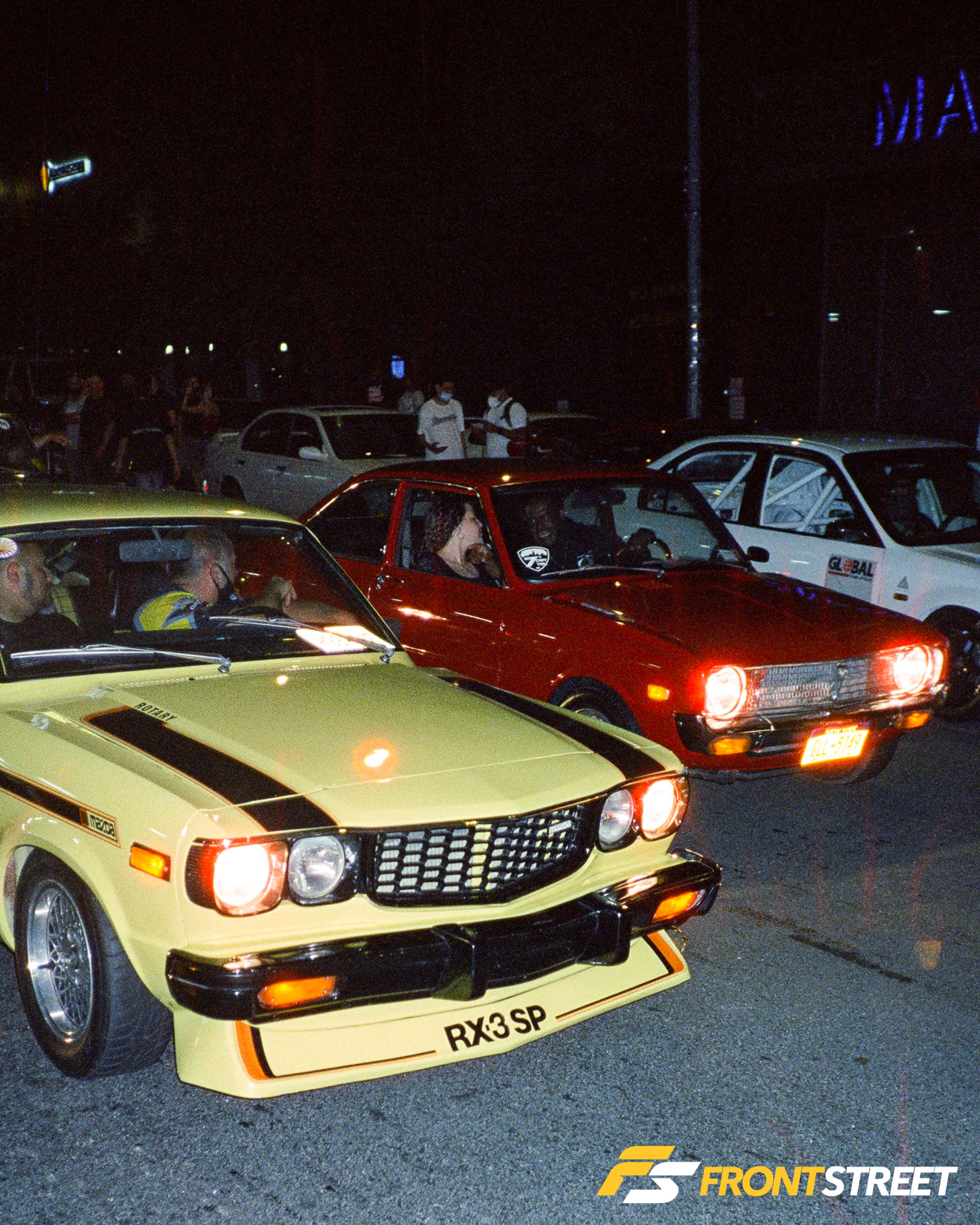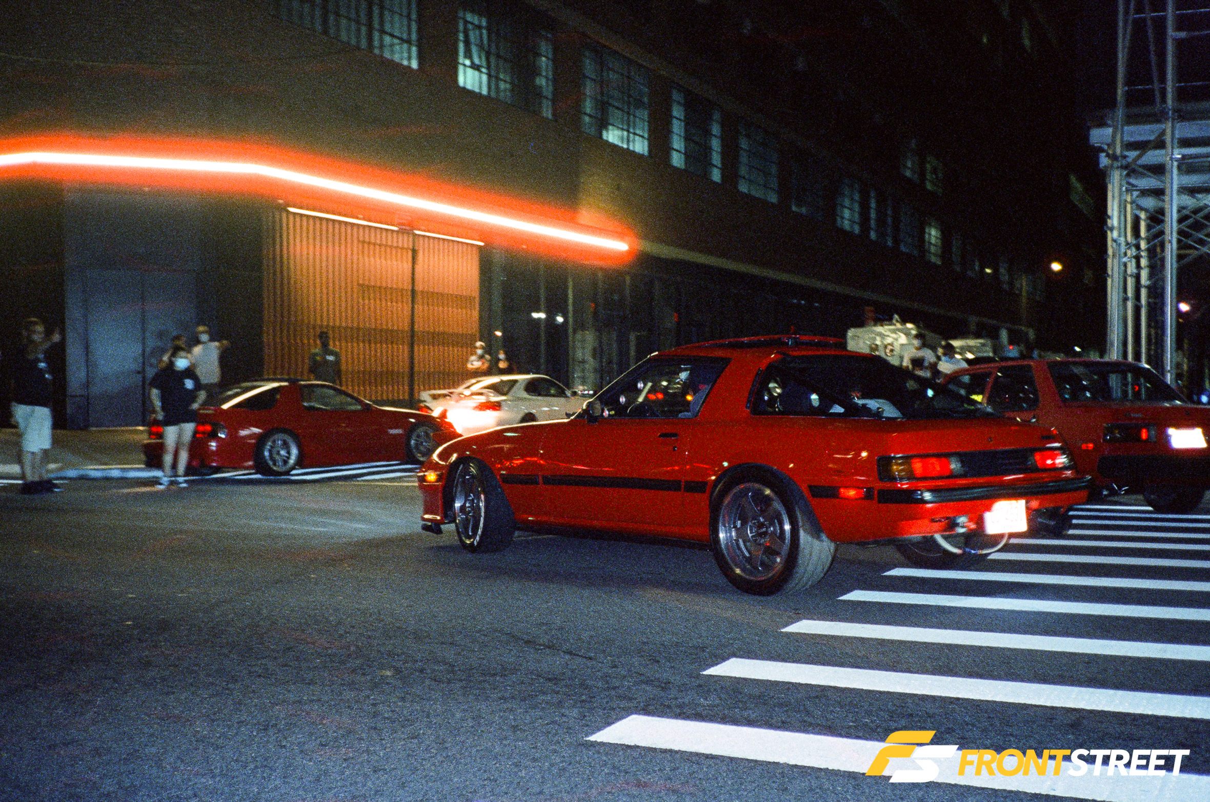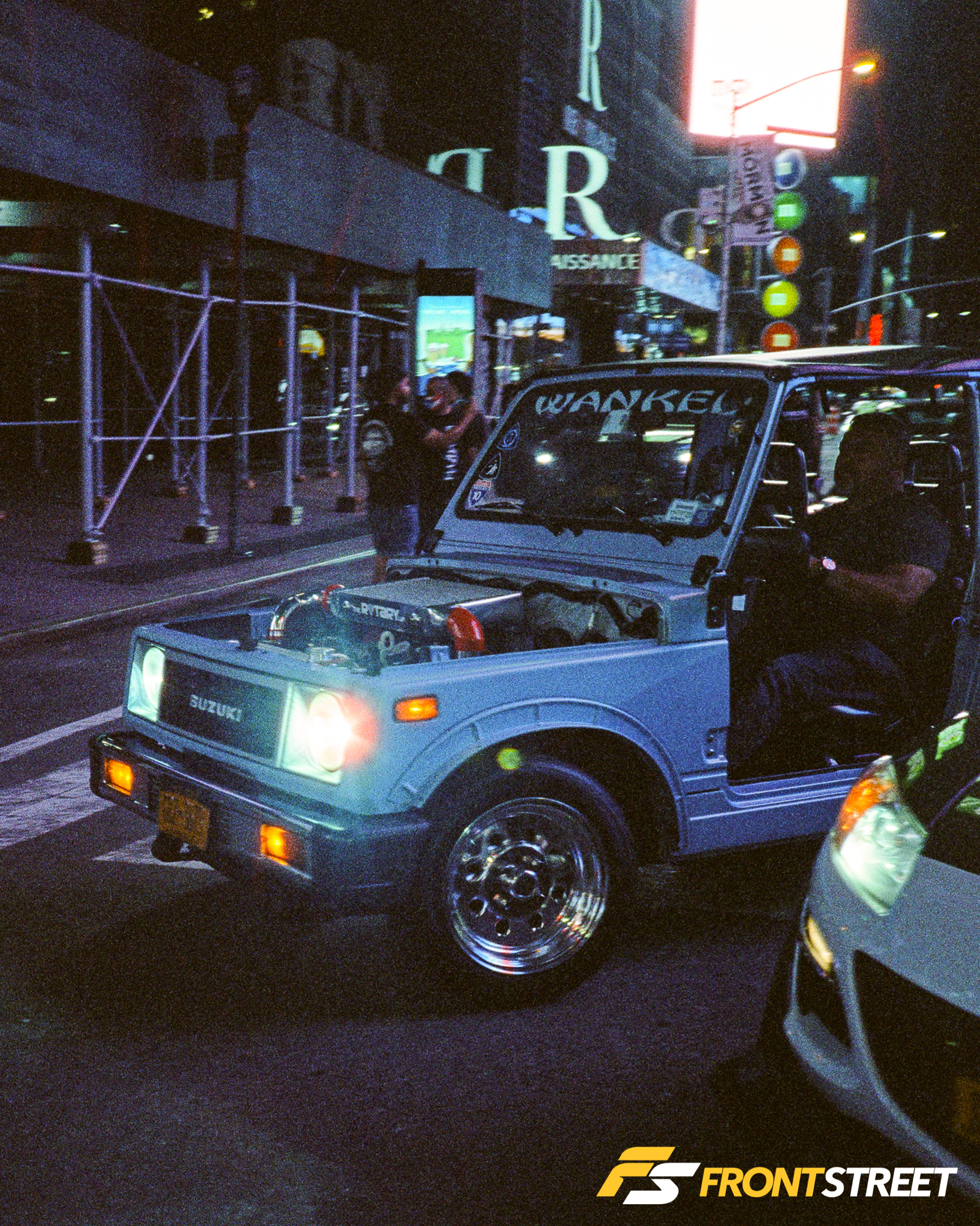 I was pleased to find a wide array of everything from gorgeous FD RX-7s to restored RX-3s. Race fuel was in the air, and the rotary engine’s one-of-a-kind melody replaced the non-existent busy NYC evening noise. Amongst the RX-7s creating their buzz, a Suzuki Samurai and a Toyota Starlet’s tones masqueraded as the legendary automobile. Perfectly mimicking its distinct sound thanks to rotary engines equipped underhood.