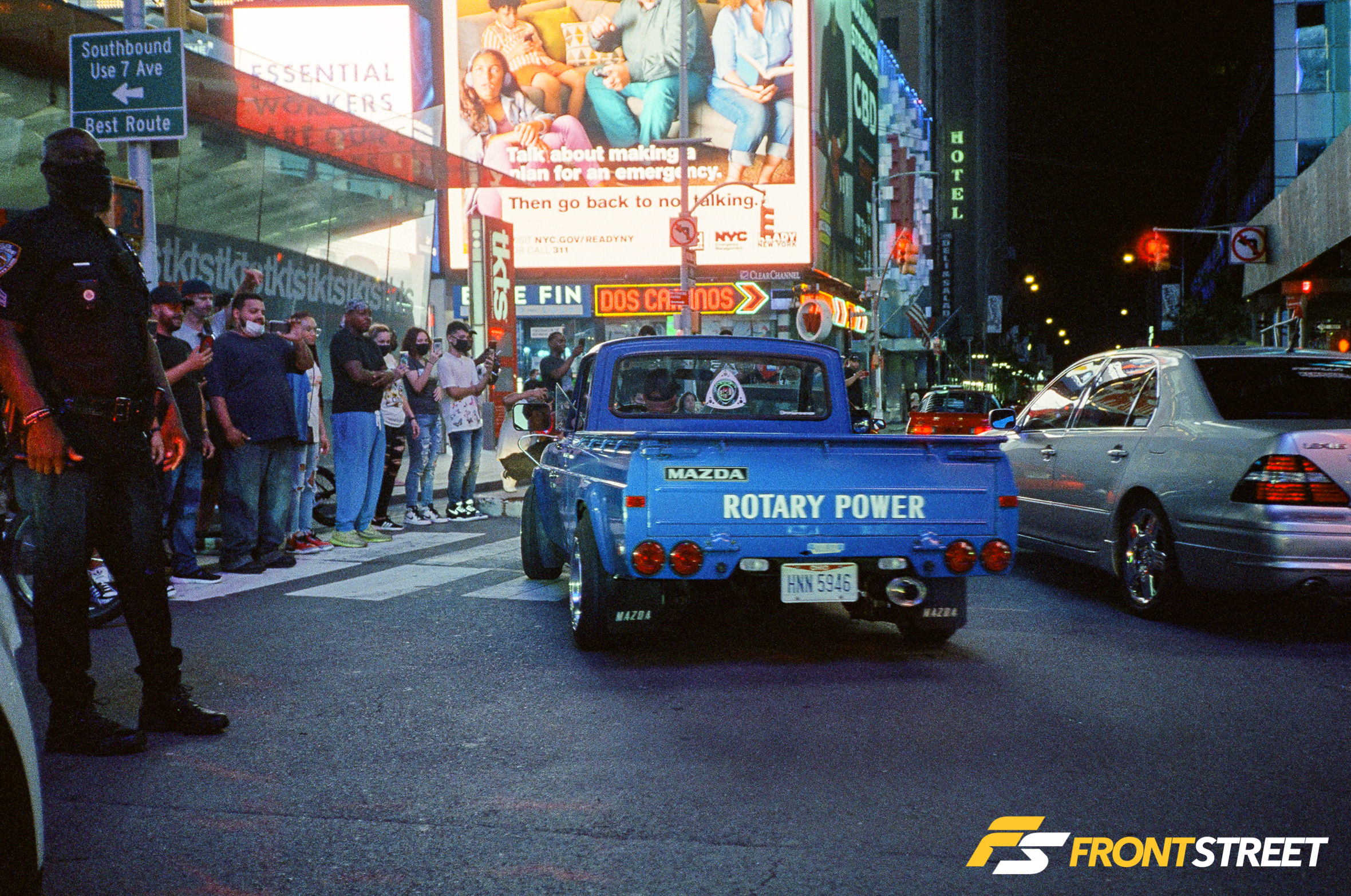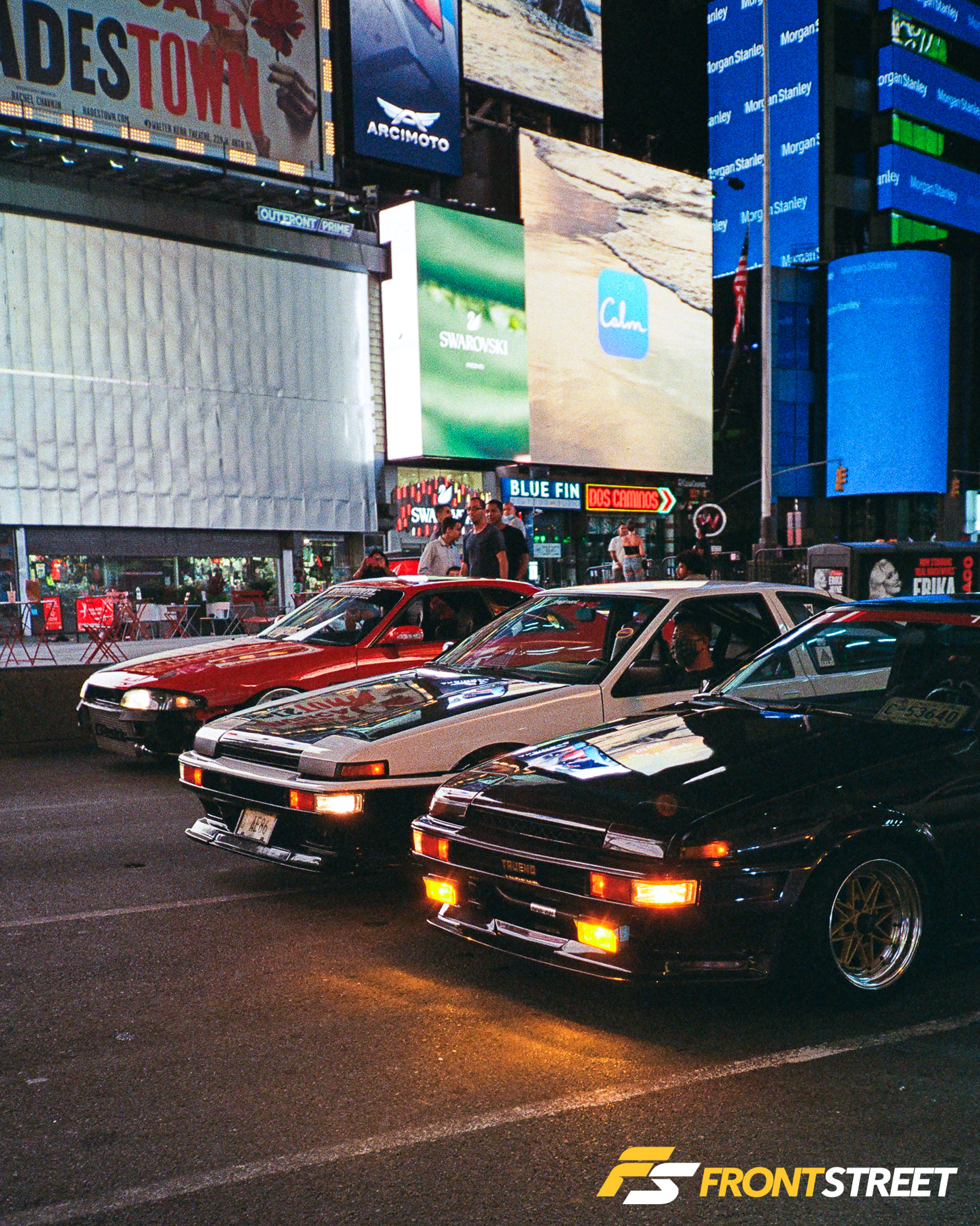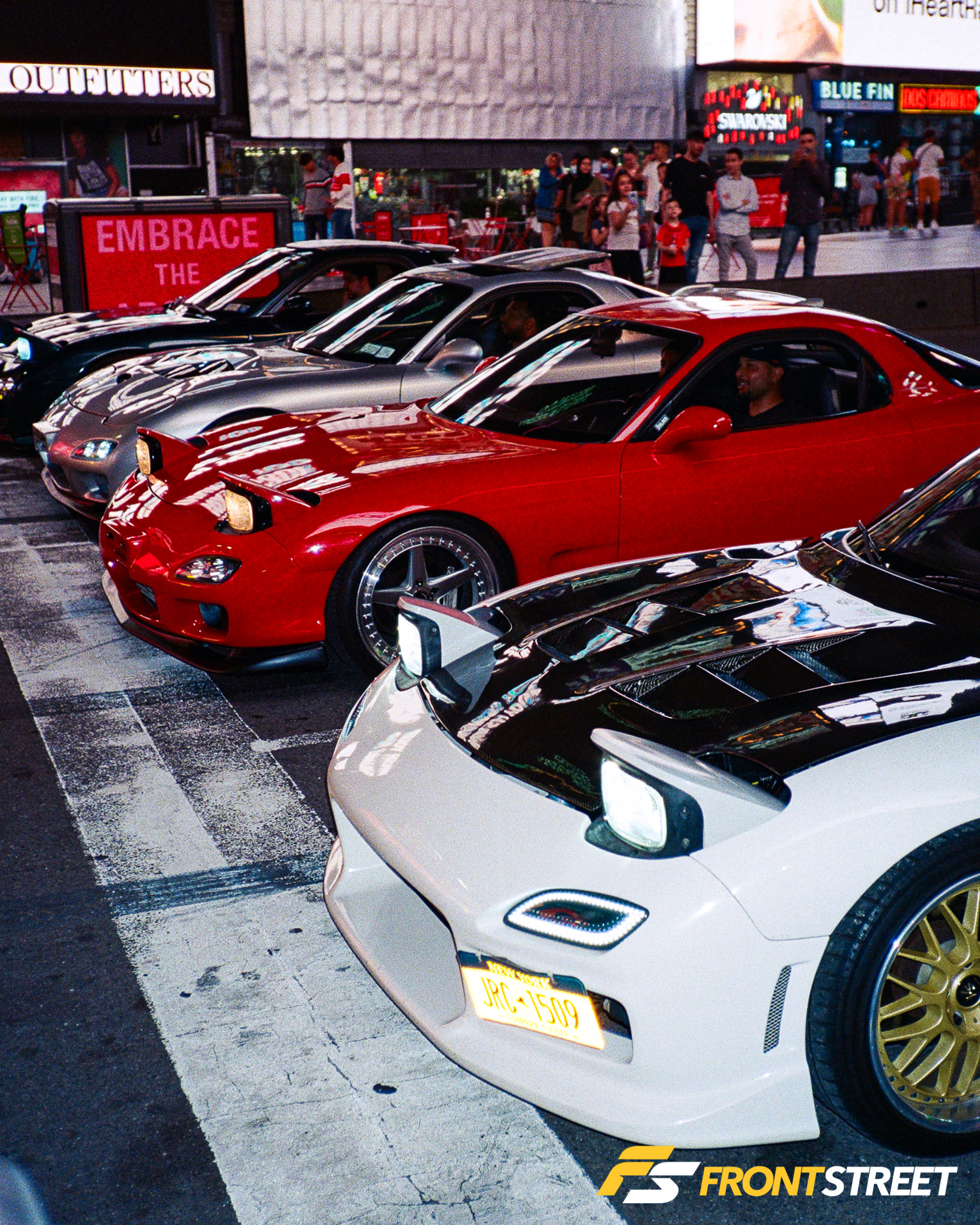 As the invited convoy arrived, I noticed it was led by Edwin’s Car Modify Wonder-kitted S14. It also featured a pair of AE86s, Willy of Nostalgic Grain’s insane BMW 3.0 CSL build, Ricky Pen’s bagged right-hand-drive FD3S RX-7 and a few other specialized builds. Once this concluded, the night was now complete, and everything was right with the world as the 7’s Day cruise took its journey through Times Square.