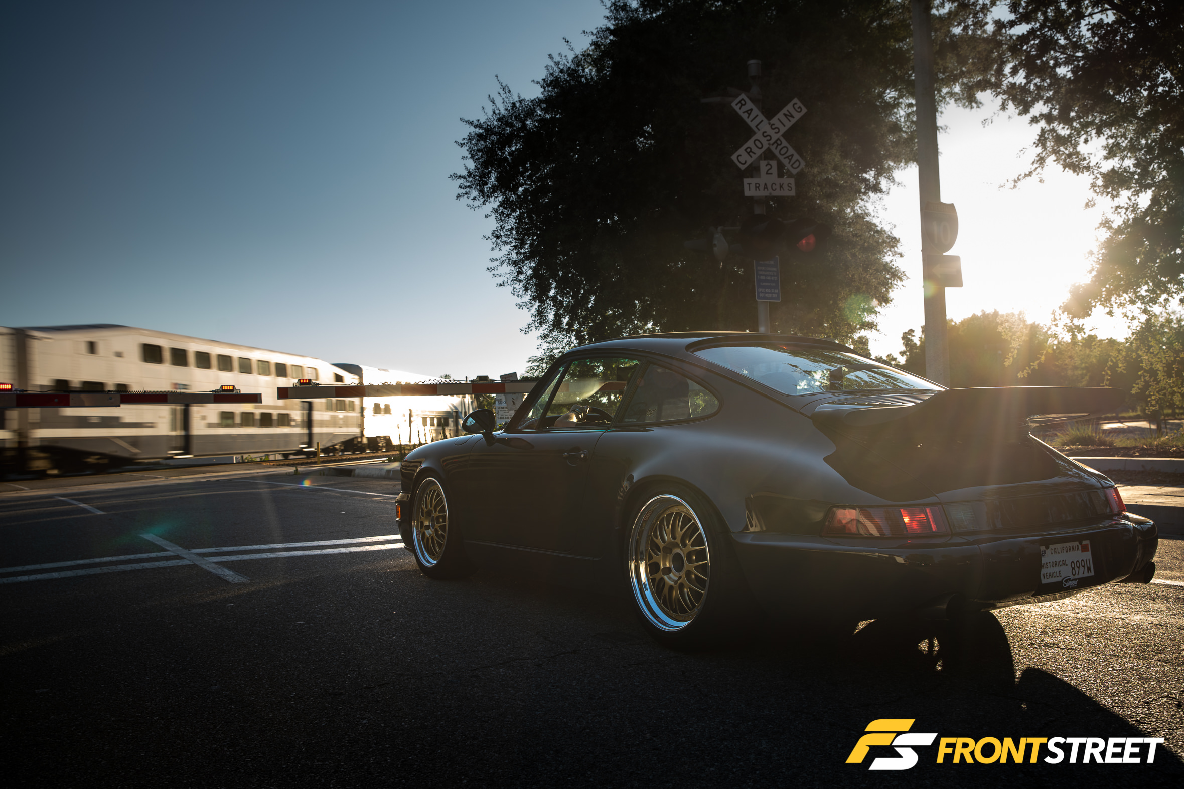 To add to the list of custom modifications, Jared’s good friend Willy from WillyWerx created a custom 964 chin spoiler just for him. Jared’s own requirements entailed that it didn’t hang too low and was somewhat OEM-looking in nature. Willy nailed the one-off lip perfectly, and it has survived many miles of driving without getting beat up. The lip’s unique design allows it to easily get over speed bumps and aggressive driveways without any issues. The front of his 964 was finished off with a set of Bosch Euro H4 headlights and FVD brake duct fog light deletes, giving it the race look he was aspiring for.