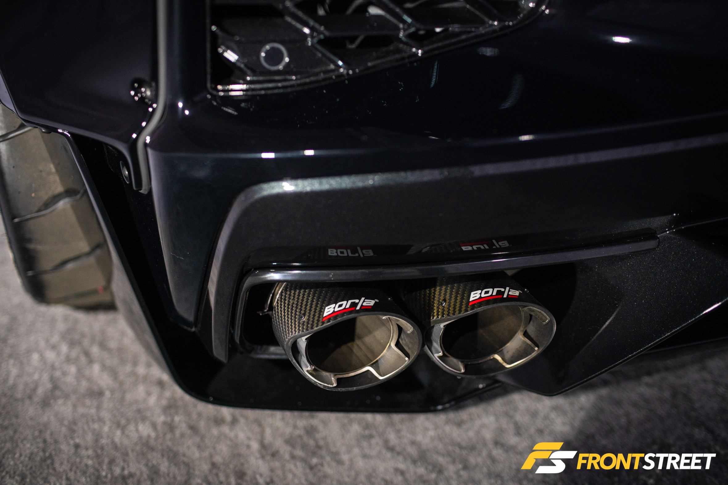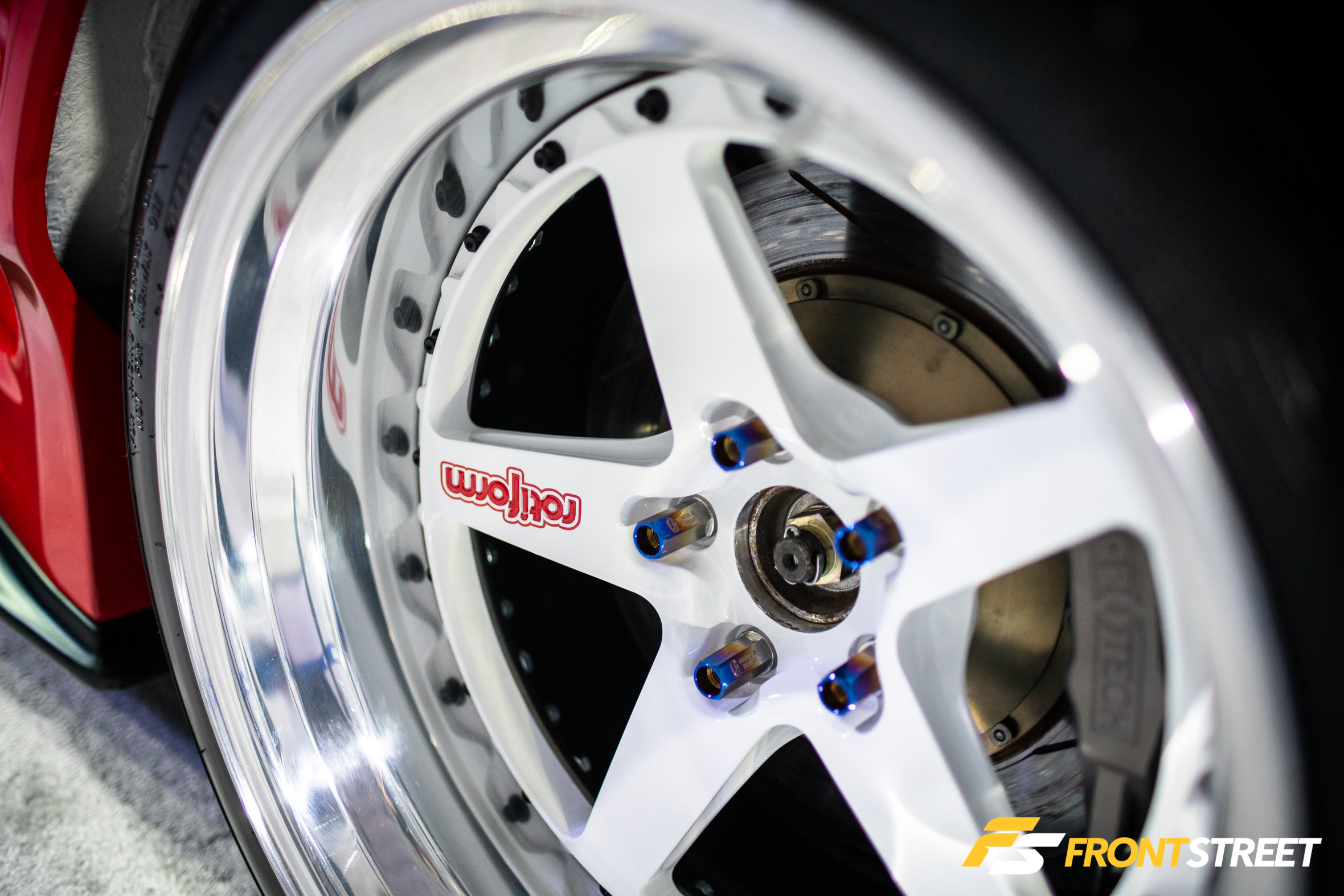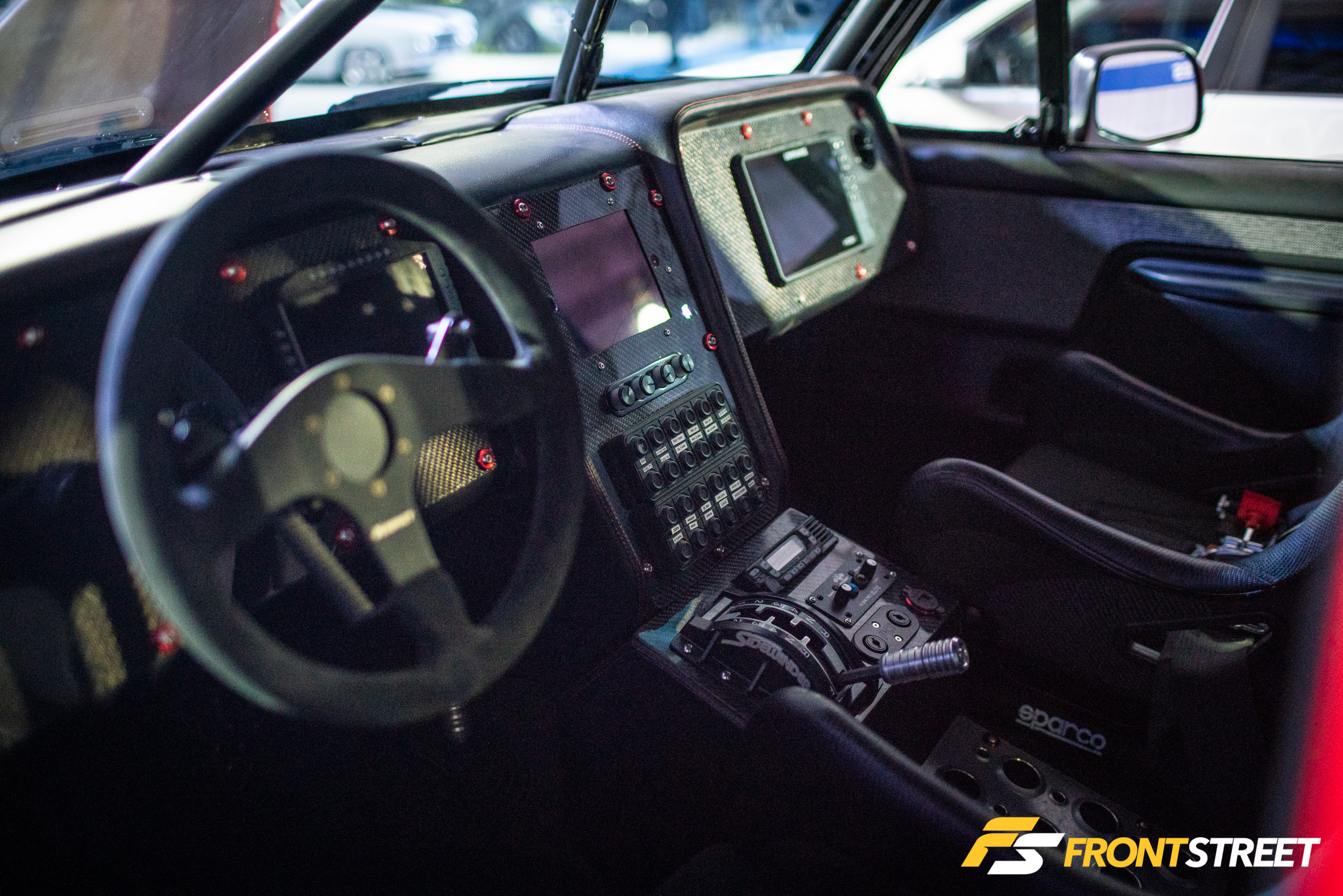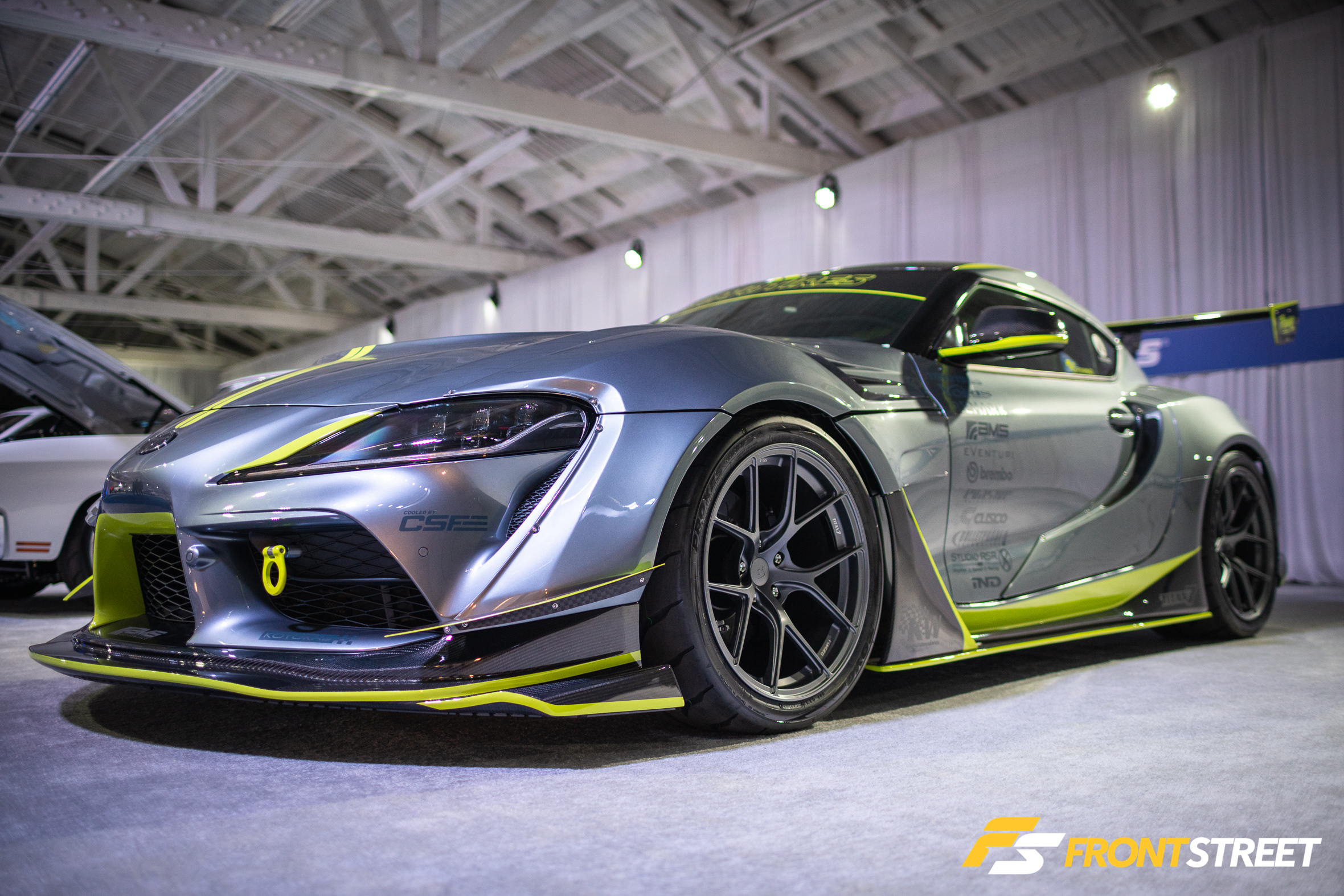Ravi Dolwani from CSF Performance isn’t new to building high-speed cars. Loyal readers will remember his Porsche 991 Turbo half-mile car we featured right here on Front Street. Back for a second go-round, this Evo X from our good friends at CSF Performance is ready to go for a tear — again. Not to be confused with its first iteration showcased two years ago at the SEMA Show, this new build of the same chassis started all over from the ground up. We liked seeing products from Turbosmart in the engine bay, and the Rotiform wheels with wide 275/35/R18 Proxes RS1 rubber were a nice touch, too. As pretty as it is sitting under the lights, the car is meant for track time. In fact, just a day or so after this event, Michael Essa piloted this Ferrari red-painted, big-aero-having, powerhouse around the Buttonwillow Raceway Park course in the Global Time Attack Finals — more on that another time, though.