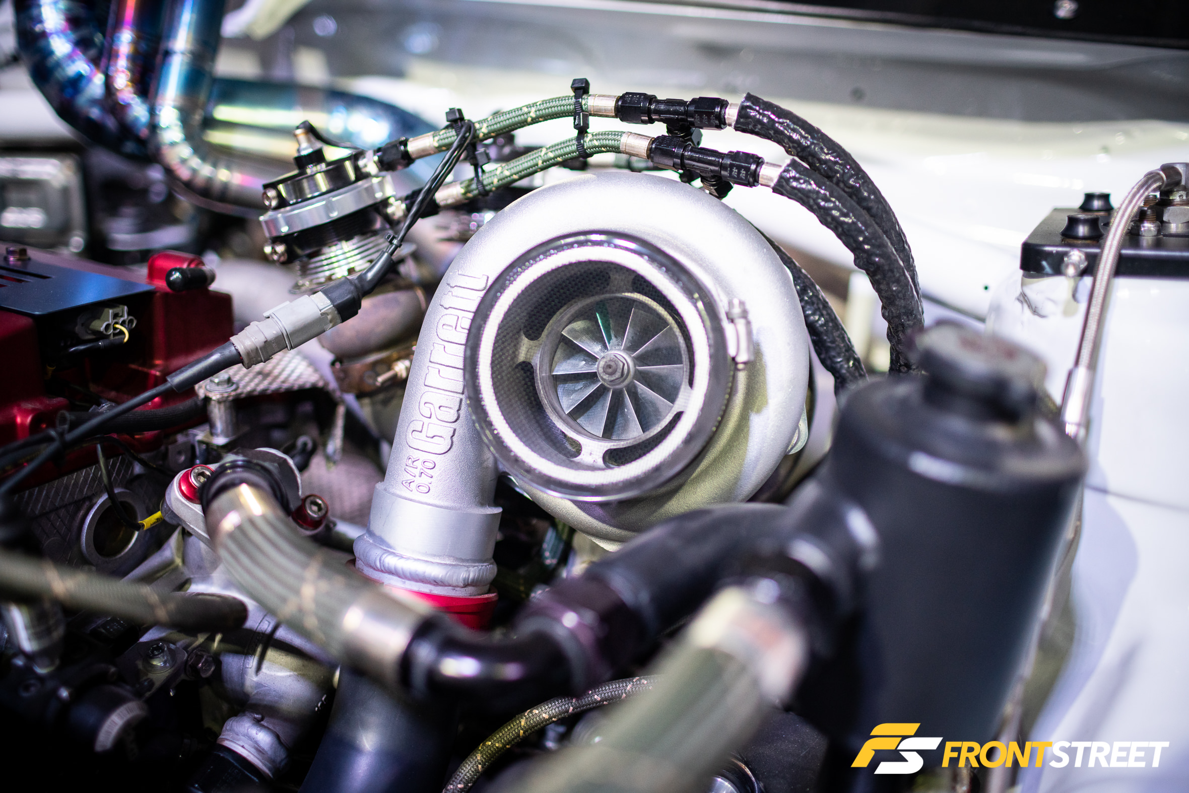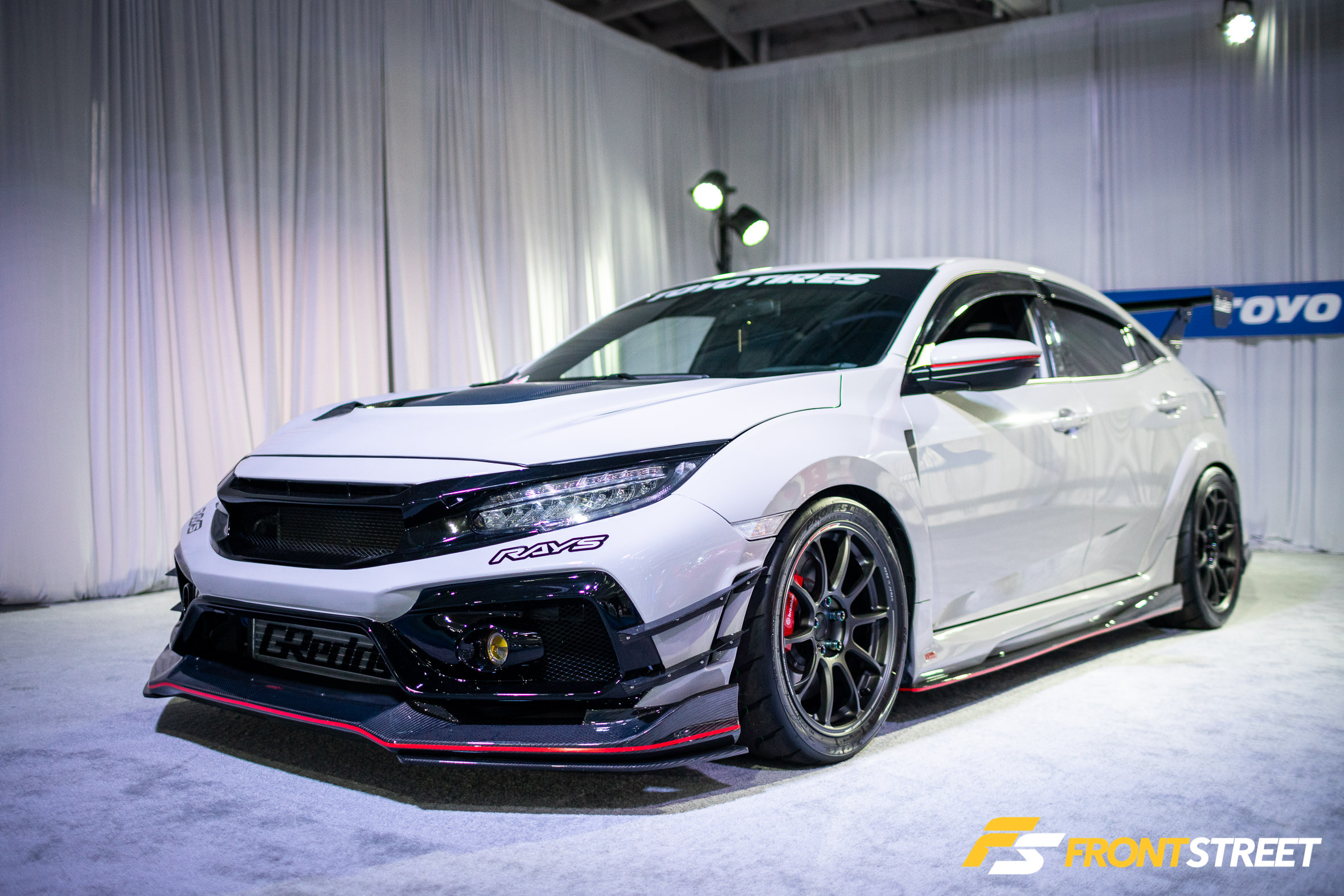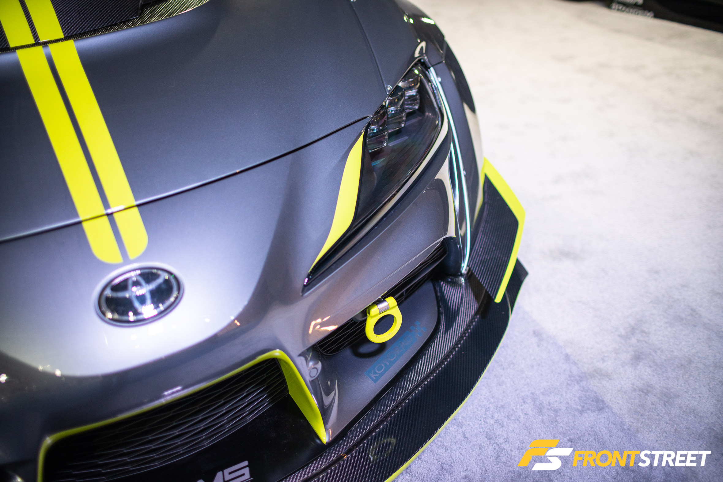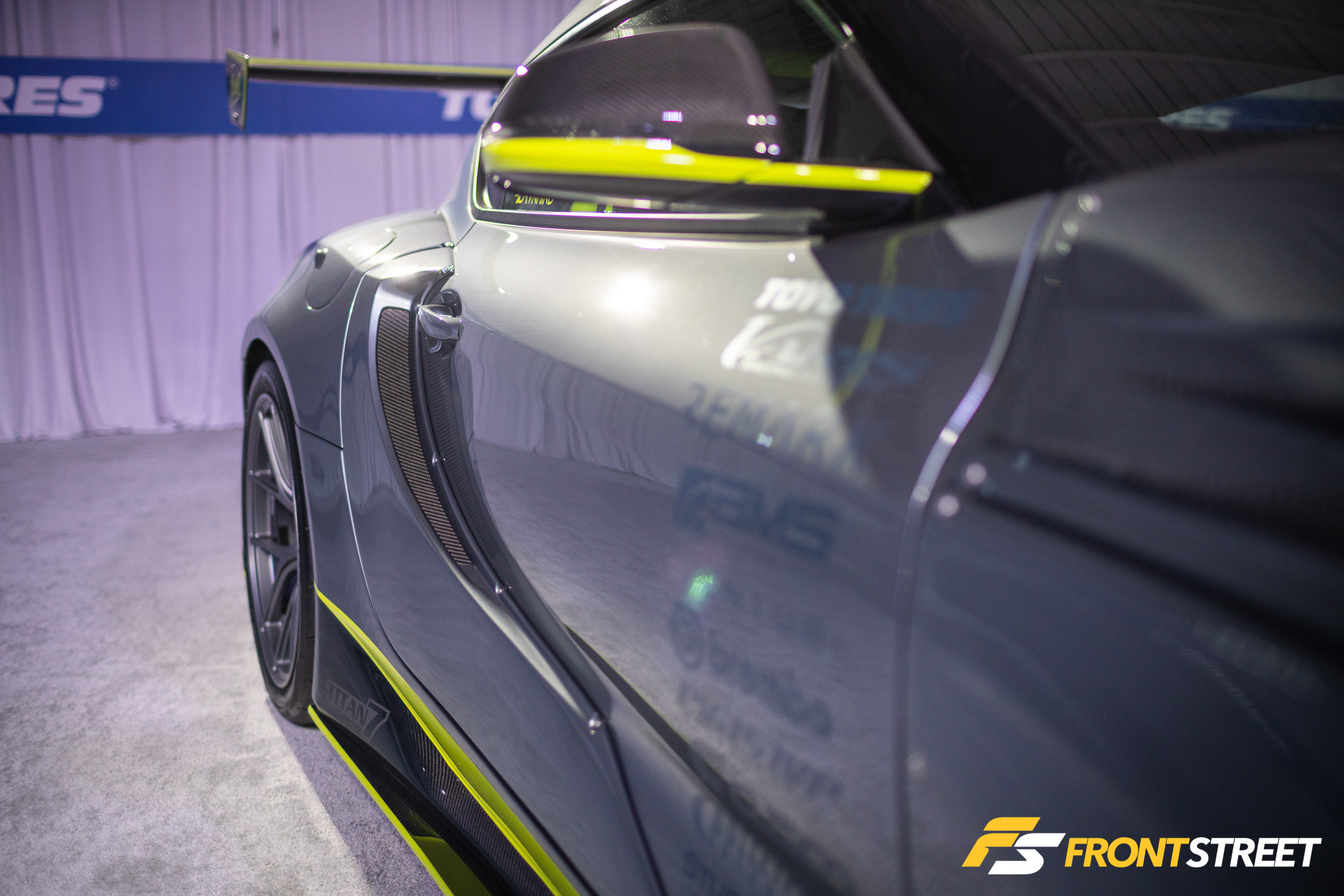 Ravi Dolwani from CSF Performance isn’t new to building high-speed cars. Loyal readers will remember his Porsche 991 Turbo half-mile car we featured right here on Front Street. Back for a second go-round, this Evo X from our good friends at CSF Performance is ready to go for a tear — again. Not to be confused with its first iteration showcased two years ago at the SEMA Show, this new build of the same chassis started all over from the ground up. We liked seeing products from Turbosmart in the engine bay, and the Rotiform wheels with wide 275/35/R18 Proxes RS1 rubber were a nice touch, too. As pretty as it is sitting under the lights, the car is meant for track time. In fact, just a day or so after this event, Michael Essa piloted this Ferrari red-painted, big-aero-having, powerhouse around the Buttonwillow Raceway Park course in the Global Time Attack Finals — more on that another time, though.