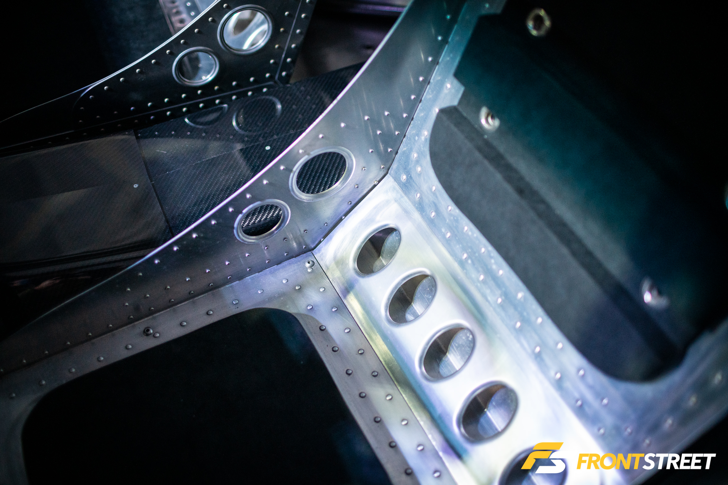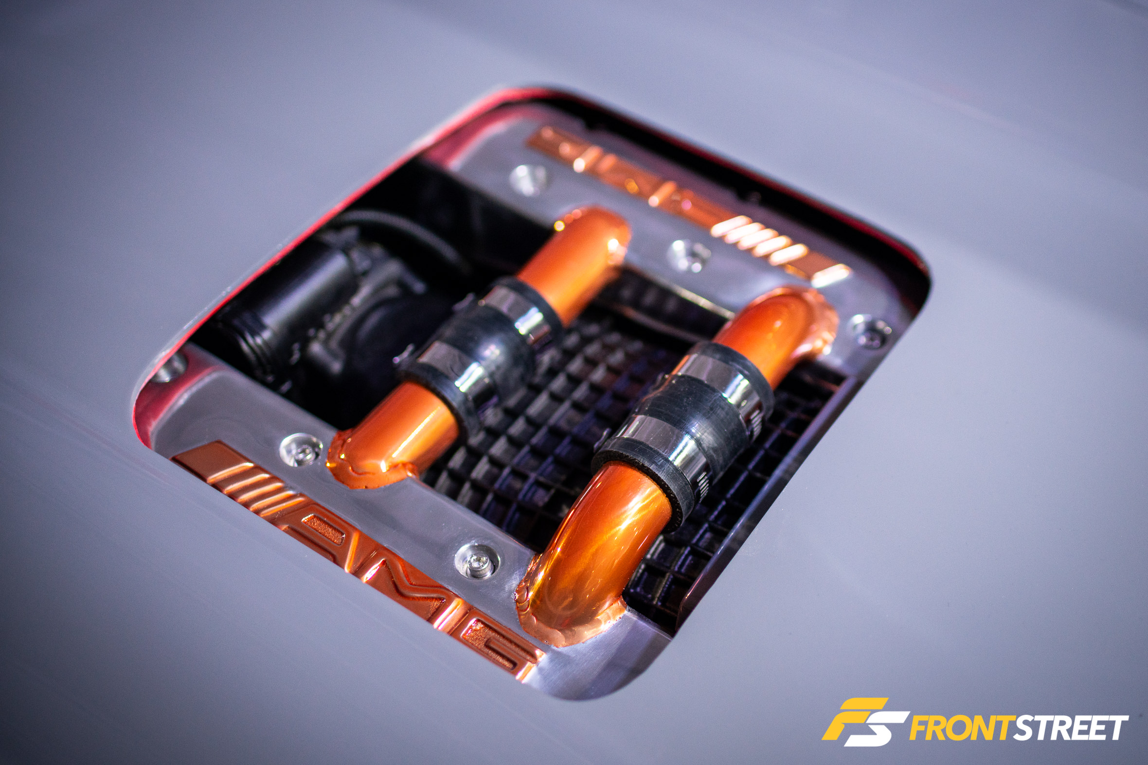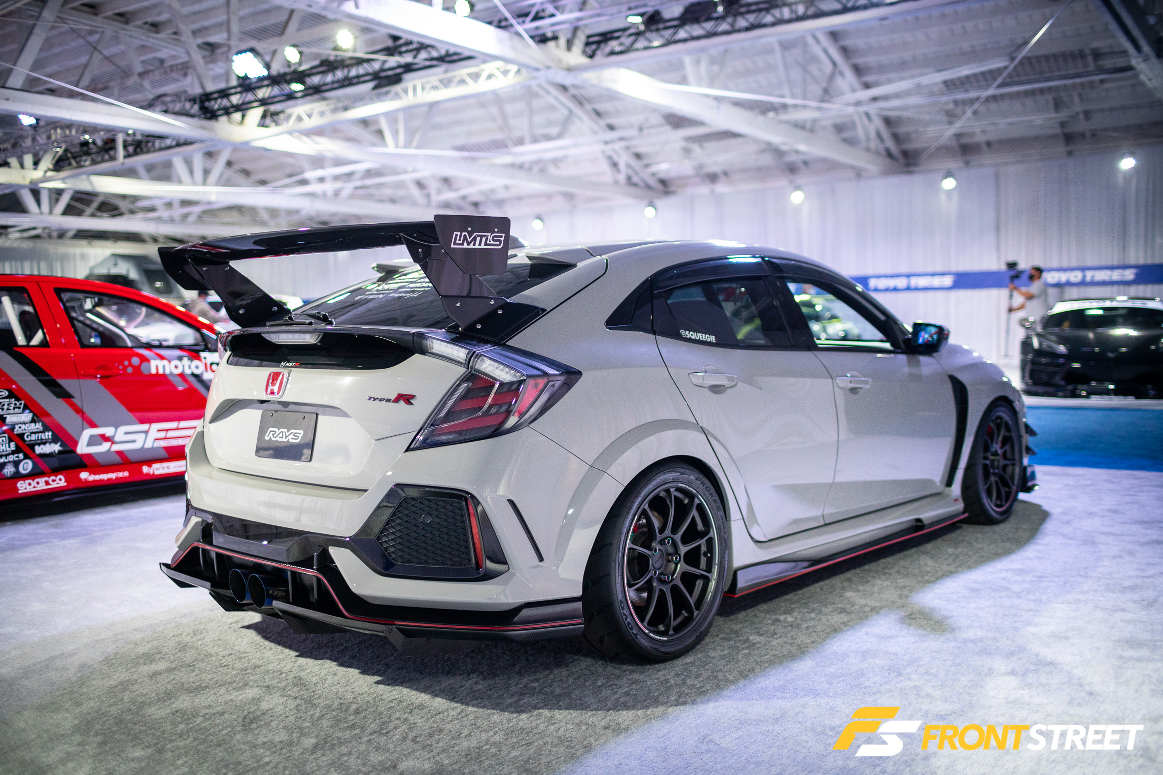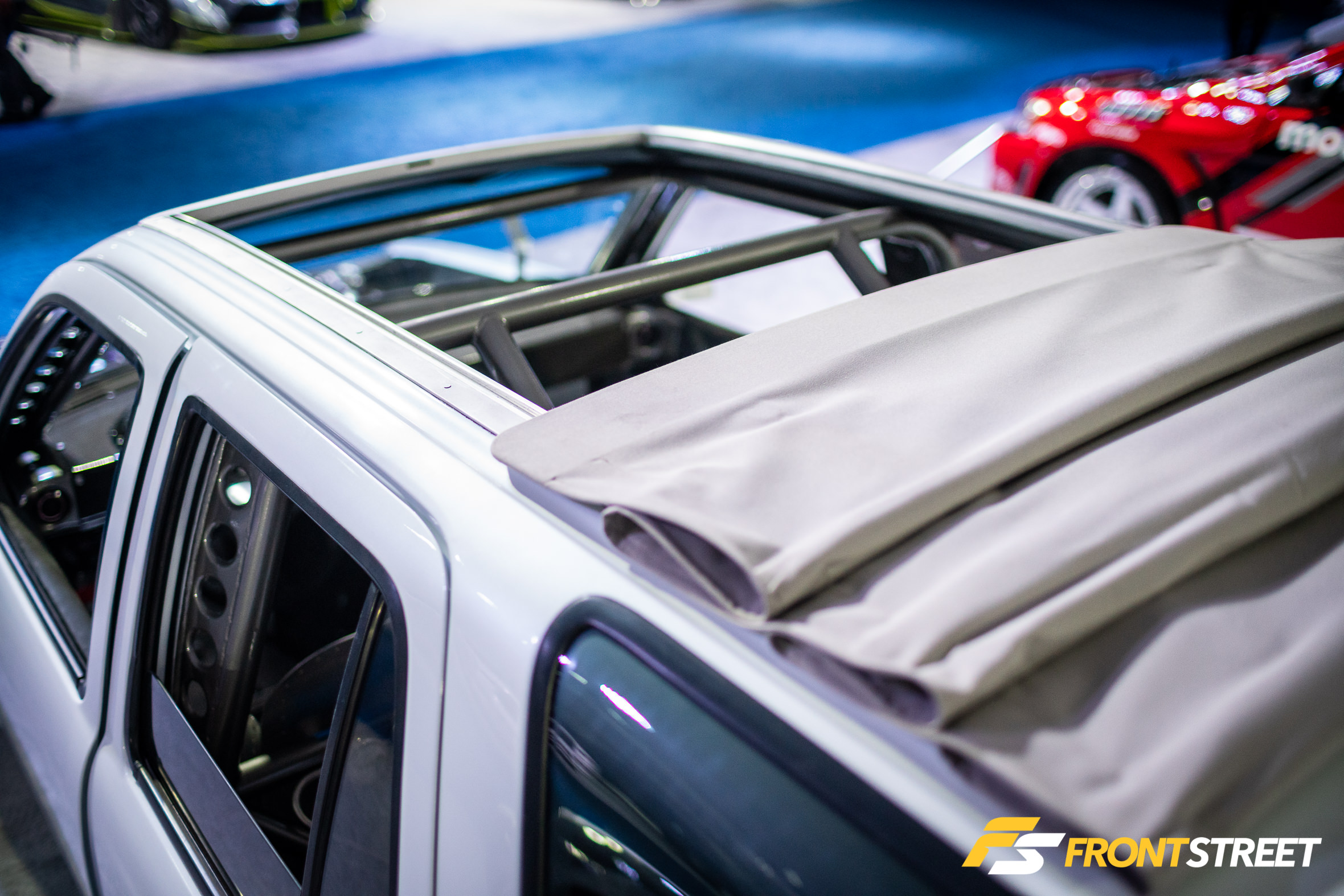 Ravi Dolwani from CSF Performance isn’t new to building high-speed cars. Loyal readers will remember his Porsche 991 Turbo half-mile car we featured right here on Front Street. Back for a second go-round, this Evo X from our good friends at CSF Performance is ready to go for a tear — again. Not to be confused with its first iteration showcased two years ago at the SEMA Show, this new build of the same chassis started all over from the ground up. We liked seeing products from Turbosmart in the engine bay, and the Rotiform wheels with wide 275/35/R18 Proxes RS1 rubber were a nice touch, too. As pretty as it is sitting under the lights, the car is meant for track time. In fact, just a day or so after this event, Michael Essa piloted this Ferrari red-painted, big-aero-having, powerhouse around the Buttonwillow Raceway Park course in the Global Time Attack Finals — more on that another time, though.