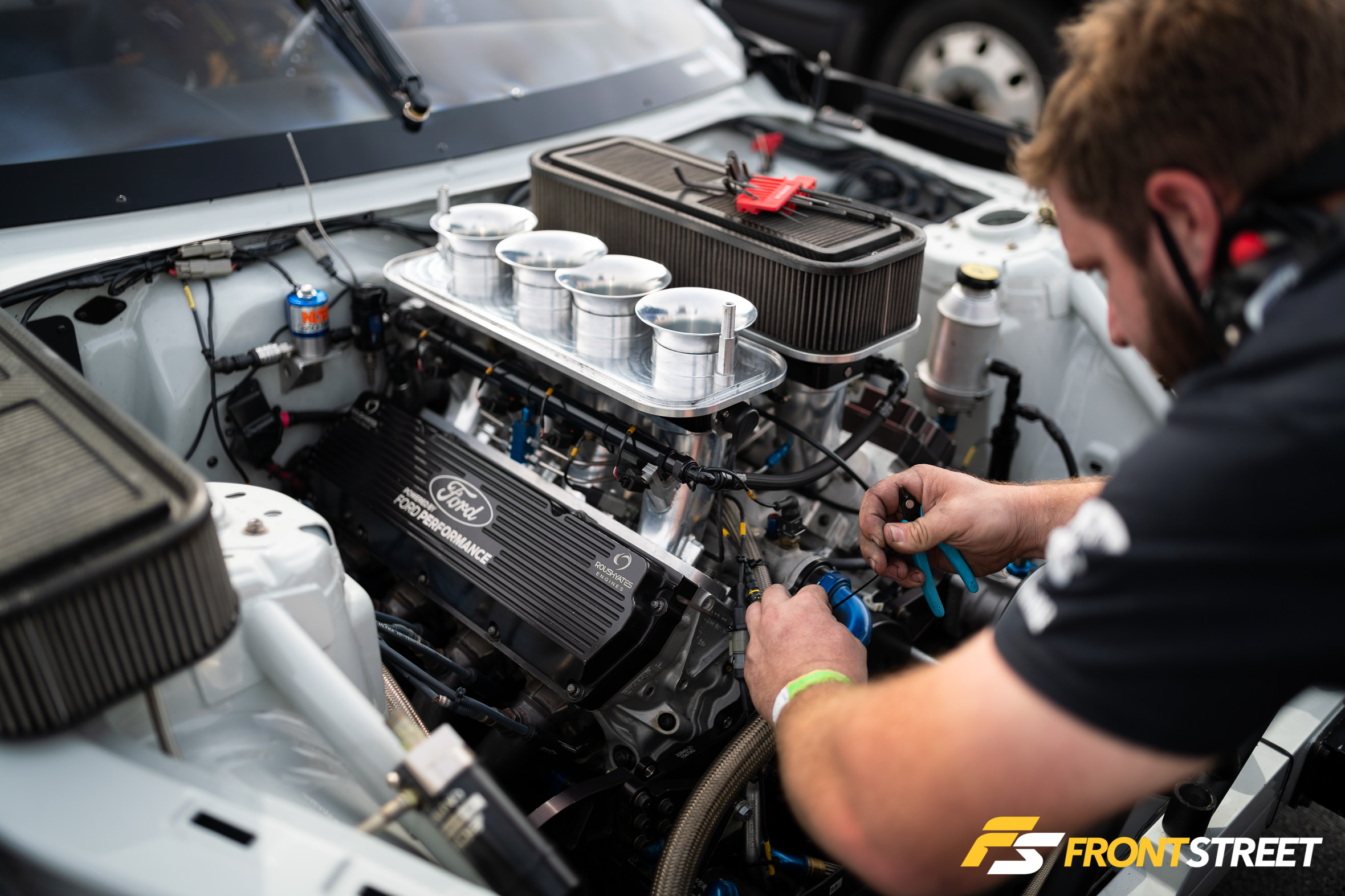 Irwindale is also where teams turn up the wick on power. Steph tuned the Toyota B58 inline-six in Fred’s Supra from its usual 1,000 hp to over 1,200 hp at around 8,800 rpm for Irwindale competition. The engine held together perfectly from Texas’s doubleheader through Fred’s win at Round 7 in Irwindale. However, it finally gave up the ghost during celebratory donuts.