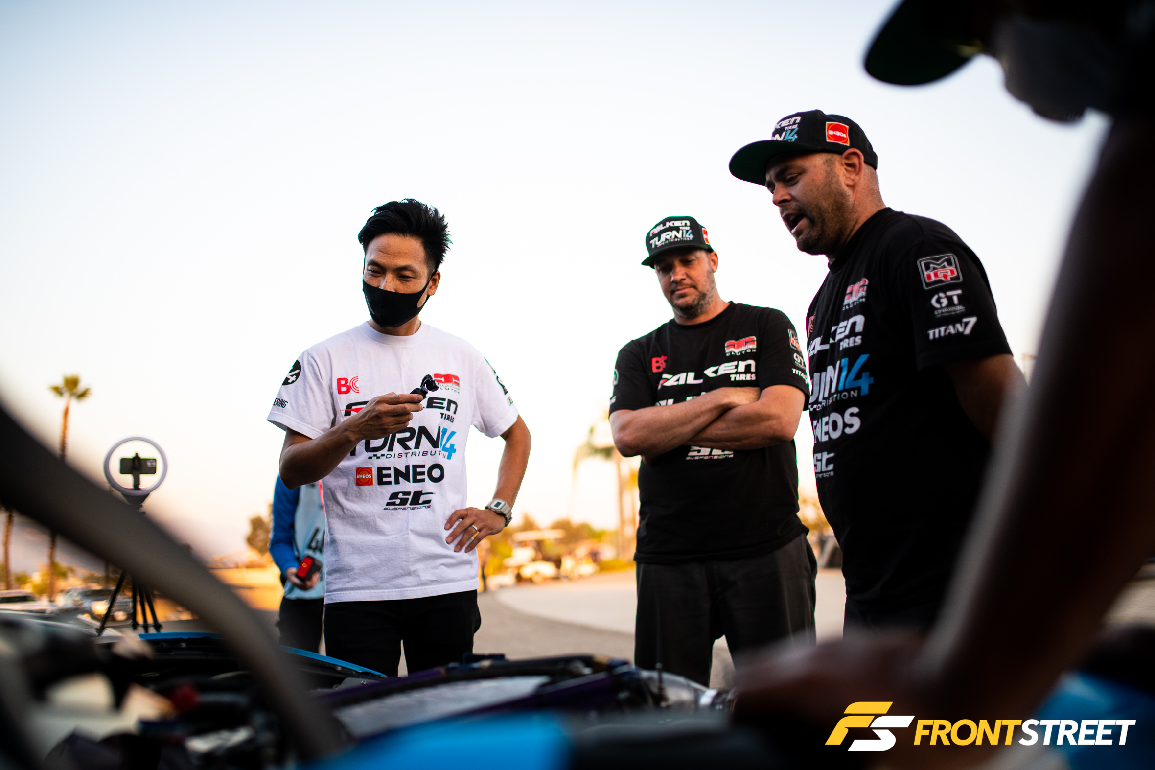 But that’s only where the work began. Chris’s team found a loaner car in Matt Field’s retired V8-powered S14. They launched a one-day mission on Saturday to drive up to San Francisco to fetch it, dial it in at Buttonwillow Raceway, add some livery, and get it on the line for Top 32 competition Sunday.