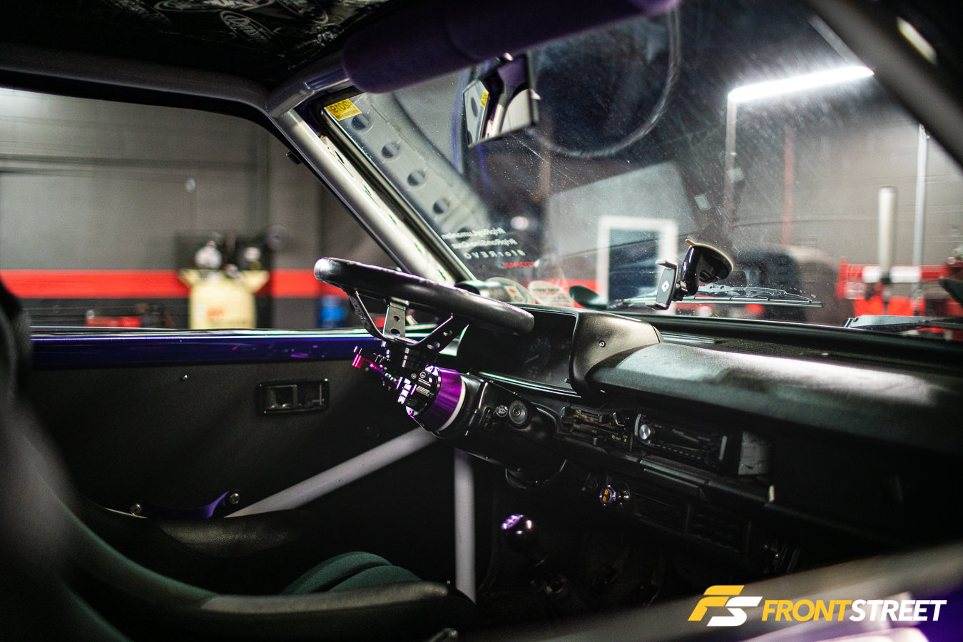 - Widened fenders dressed in House of Kolors Pavo Purple frame the 14-inch Watanabe wheels for perfect period-correct JDM nostalgia.