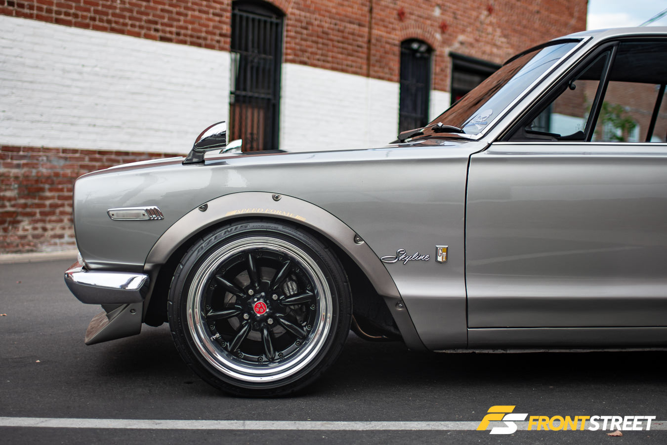 Rick credits his friends Masaya from JP USA and Taka from Kyusha House for much of the guidance on modifying the classic Nissan, as hakosuka parts are hardly a click it and ship it affair. At first glance, the Skyline’s improved stance stands out as a drastic and welcome change from the OEM setup. The rebuilt 17-inch Watanabe RS8s are an obvious nod to the past, but the sizing helps bring the car into the modern era. Fitting those wheels is made possible by adding the SpeedForme flares that echo the same era’s GT-R. A combination of Victory and GAB coilovers bring the car lower while also blessing it with a much more modern driving feel. This overall theme of respect for the chassis, while acknowledging that automotive design and engineering has improved over the past half-century, makes a solid case to even the most ardent purist that modification can be done in a way that celebrates these hero cars without ruining the original spirit of the automobile.