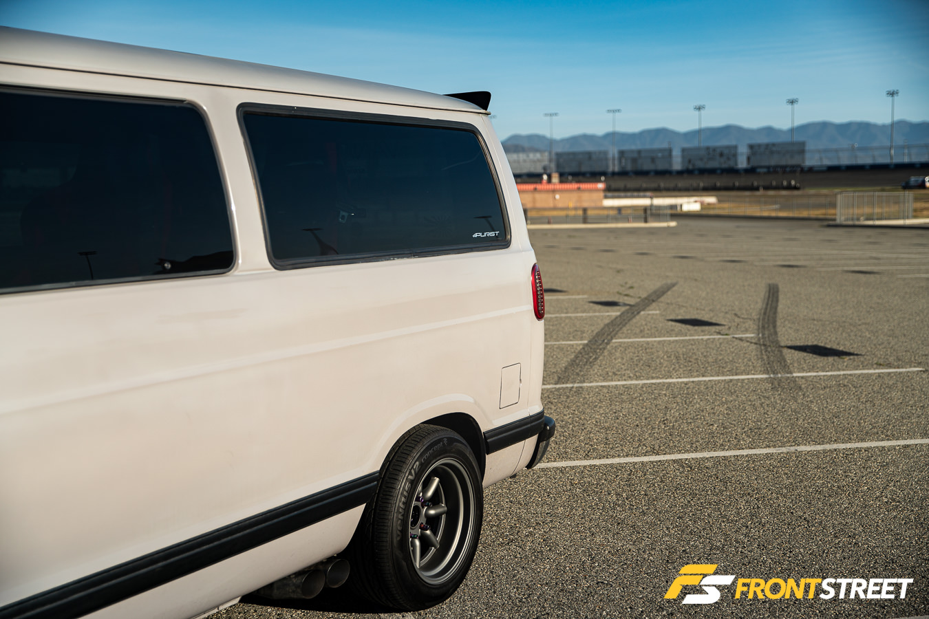 As you can imagine, there isn’t a plethora of information about modifying your Dodge van to Dajiban-spec. With the trend starting in Japan, there were no elder statesmen to contact on our shores about sourcing coveted RS Watanabe wheels or lowering the ride height — such is the problem with attempting a build like this. However, Luwin was able to form valuable relationships with various companies and people in the automotive aftermarket industry that helped his van get to its current state. Whether it’s the two-piece forged Rotiform wheels made specifically for his van’s fitment, or DR Concept fabricating custom seat mounts for his NRG seats in the rear, Luwin is grateful for every contact he has made with the van.