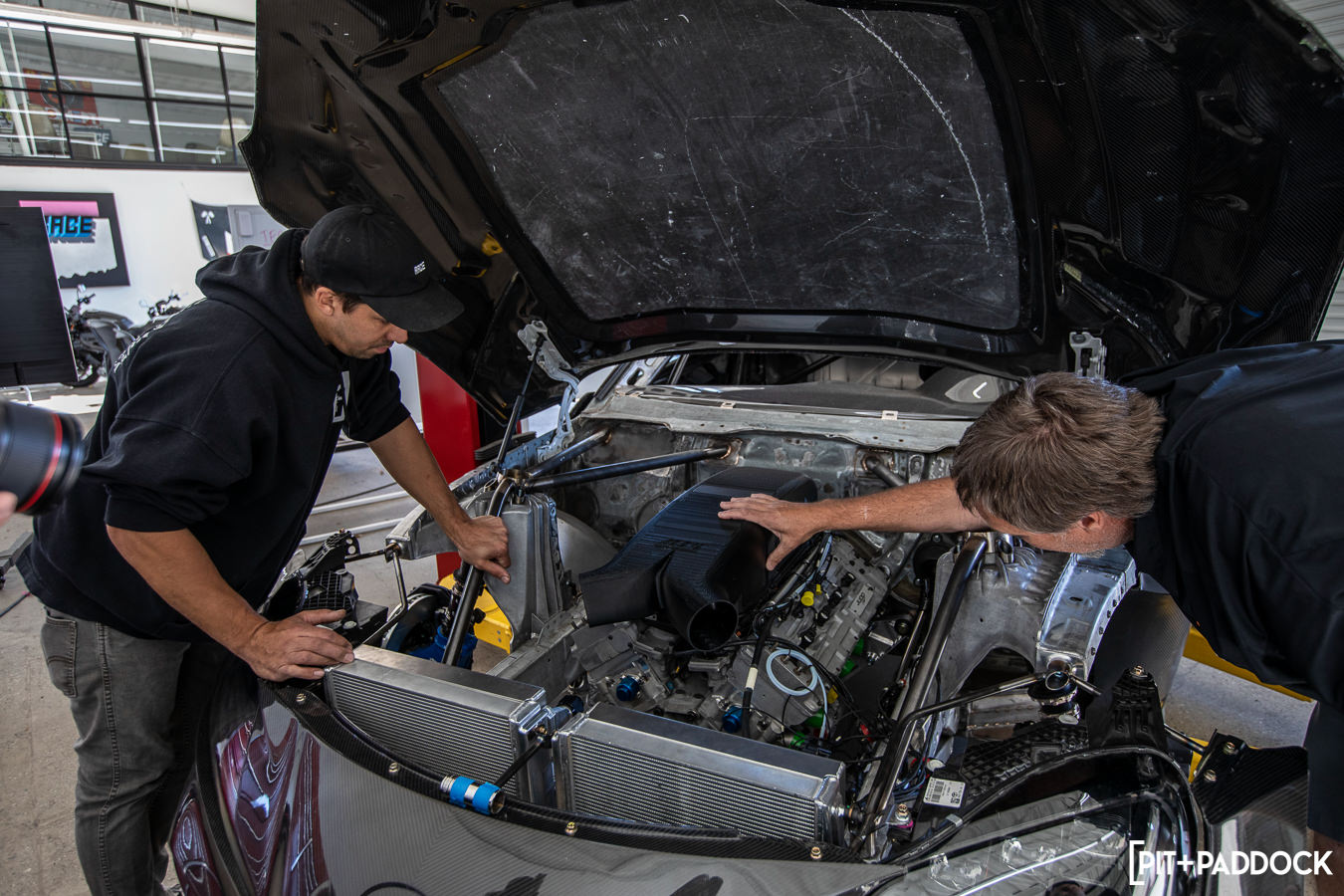 Ryan’s been documenting the entire build on his YouTube channel, which I highly recommend taking some time out of your day to watch (he also drops a new episode every Sunday). There’s an unexplainable number of manhours into the build, so it’s quite inspiring and enlightening to follow along with all the steps and details for something as extreme as this. As a Supra owner and fanboy myself, I’ve been curious about the project since Tuerck announced the #FormulaSupra six months ago. As you can imagine, I was pretty stoked when Chris Matye, brand manager of AEM Intakes, invited me to Race Service, where I was able to snap some photos and get a glimpse at one of the A90’s latest upgrades, a one-off carbon intake.