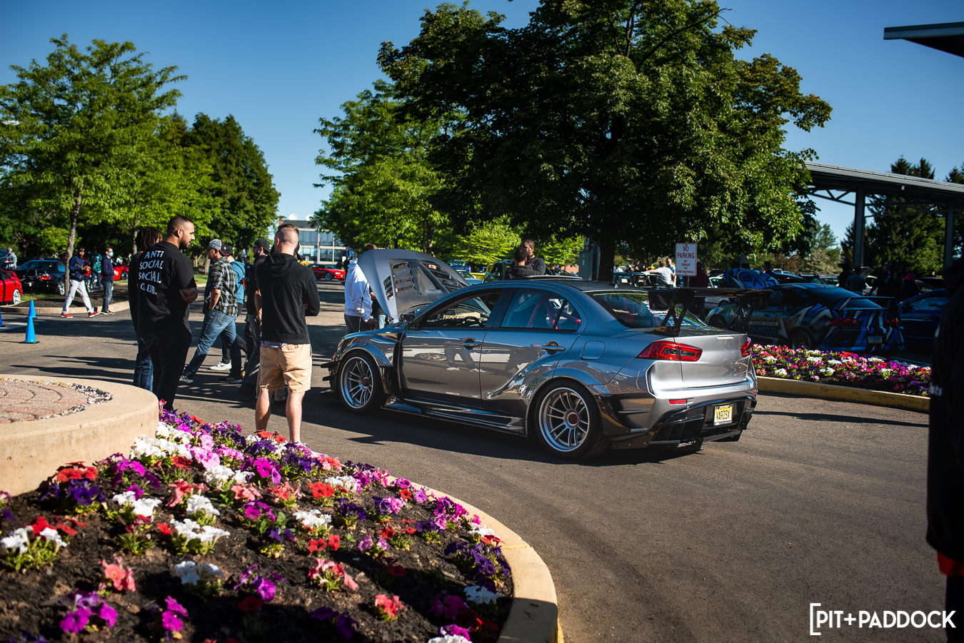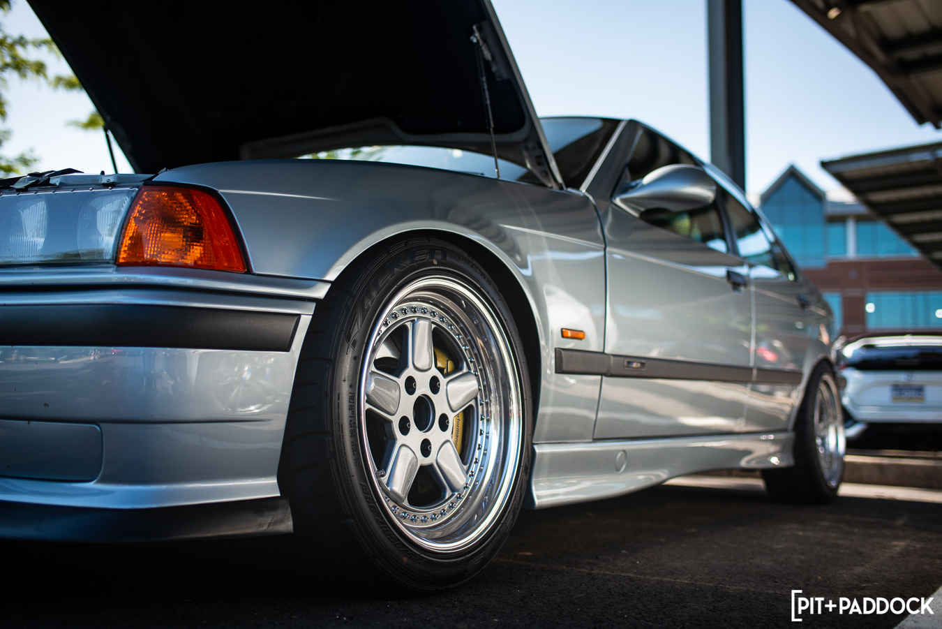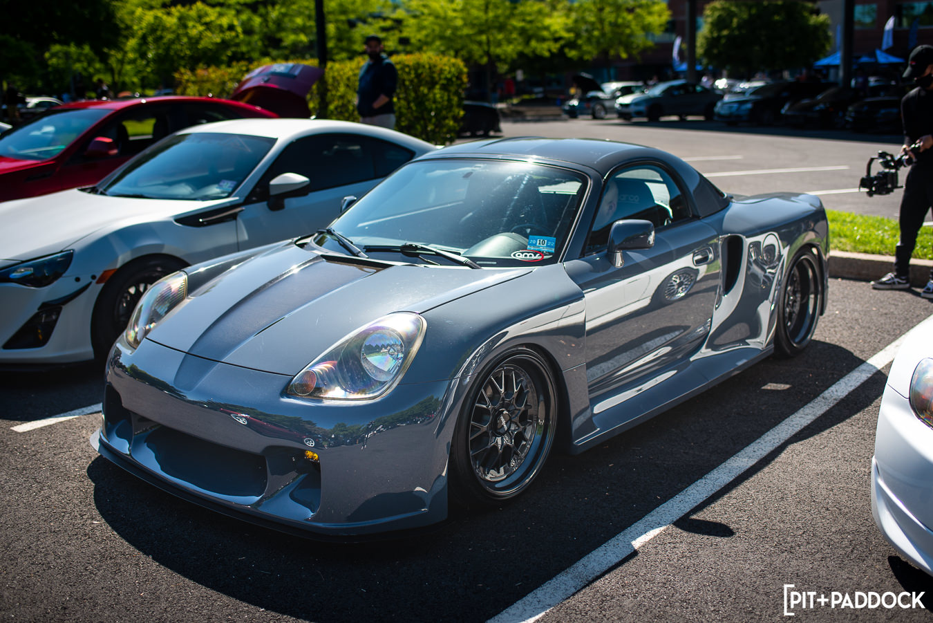 To keep this short, I’m only going to touch on one more car that stood out to me: this JZX100 Chaser Tourer V from the spectator lot(!). Now, something you need to know about me is that I love Chasers/Mark IIs/Crestas (even owned the economy version of one very briefly). On any given day, our parking lot here at Pit+Paddock sees Geoff Stoneback’s daily-driven JZX100 Mark II, and I can’t help but stare at it every time. You’d think after seeing it regularly that its allure would wear off? You’re wrong. The same lust carries over to this spotless slammed Chaser with Work wheels, ever-rarer Ganador mirrors, and Recaro confetti seats. I spoke with the owner for a minute. He disclosed that he’s got some goods on the way, like a new turbo manifold to replace the Tomei kit currently affixed to the 1JZ engine. Hopefully, this isn’t the last we see of this thing.