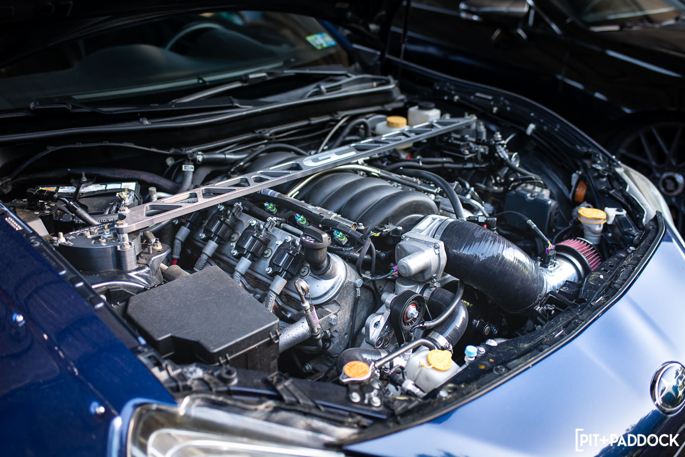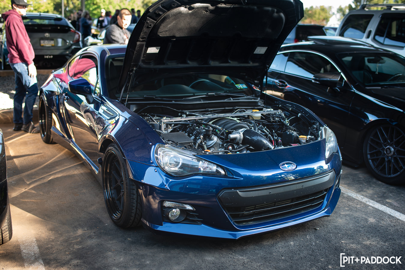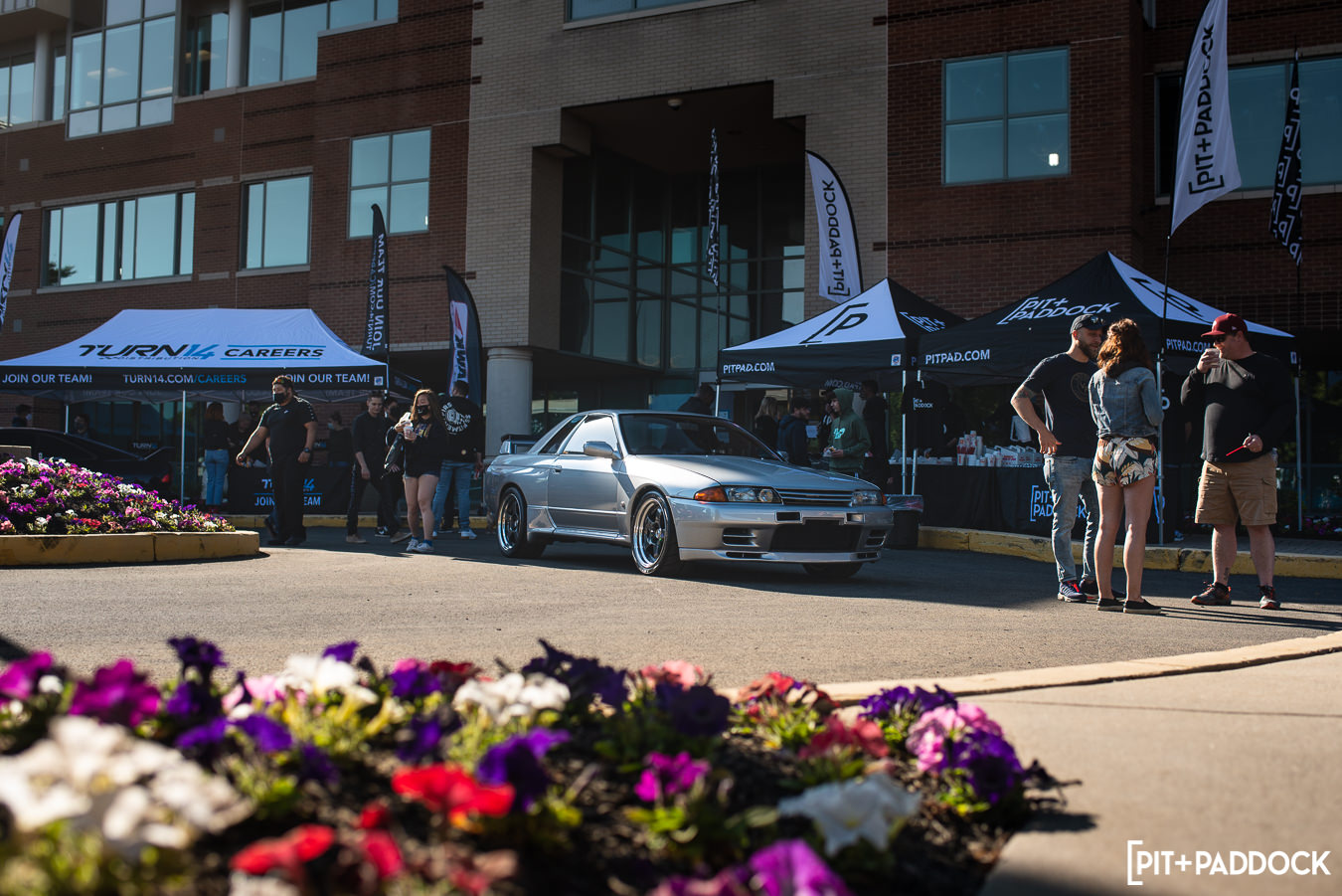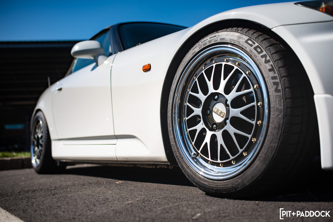 To keep this short, I’m only going to touch on one more car that stood out to me: this JZX100 Chaser Tourer V from the spectator lot(!). Now, something you need to know about me is that I love Chasers/Mark IIs/Crestas (even owned the economy version of one very briefly). On any given day, our parking lot here at Pit+Paddock sees Geoff Stoneback’s daily-driven JZX100 Mark II, and I can’t help but stare at it every time. You’d think after seeing it regularly that its allure would wear off? You’re wrong. The same lust carries over to this spotless slammed Chaser with Work wheels, ever-rarer Ganador mirrors, and Recaro confetti seats. I spoke with the owner for a minute. He disclosed that he’s got some goods on the way, like a new turbo manifold to replace the Tomei kit currently affixed to the 1JZ engine. Hopefully, this isn’t the last we see of this thing.