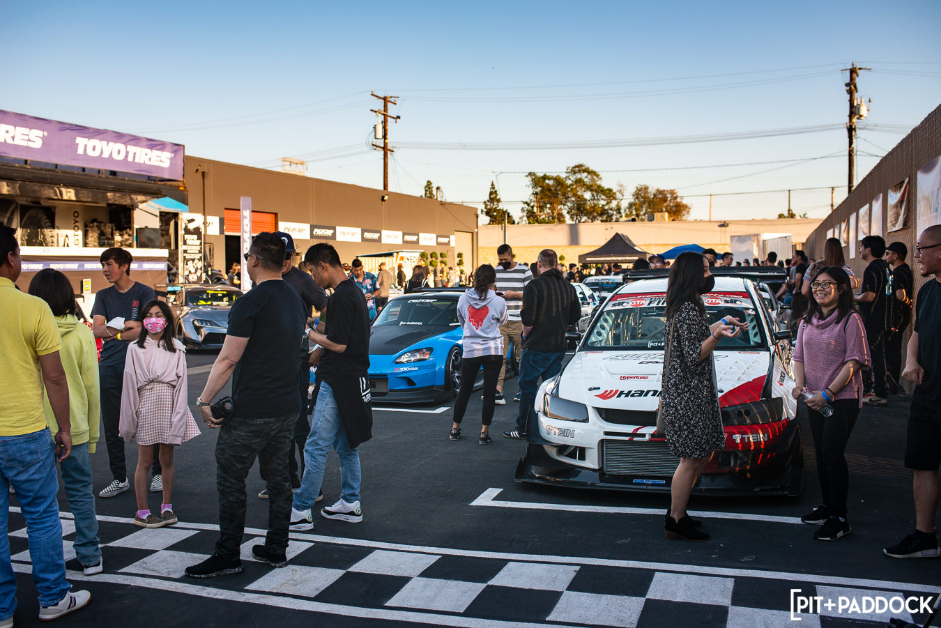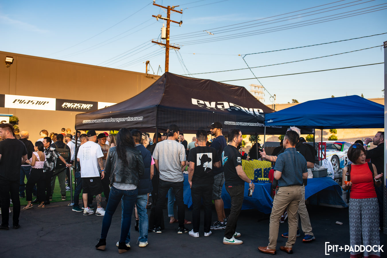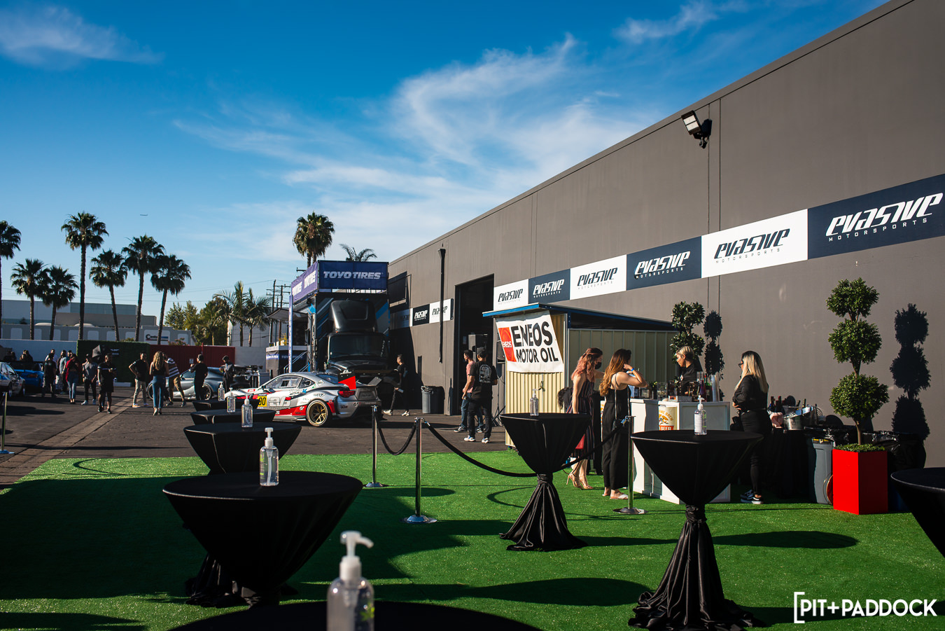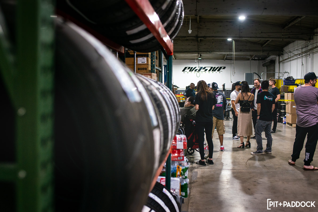 As guests made their way through the green grass-walled entrance installed for the day, they ran into many industry friends and guests on hand, which included the folks at ENEOS, Toyo Tires (thanks for bringing the Toyo girls and the rig out!), KW Suspension, CSF and more. There was also no shortage of auto influencers, either, with Dustin Williams, Emelia Hartford, RJ DeVera, Sara Choi, Ken Gushi, and more in the house. It honestly felt like a SEMA party more than an open house, and that is truly what made it feel special for Pit+Paddock and Evasive Motorsports to bring the community together.