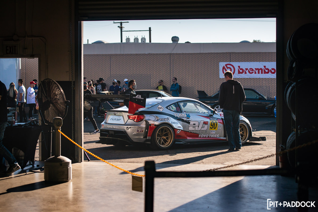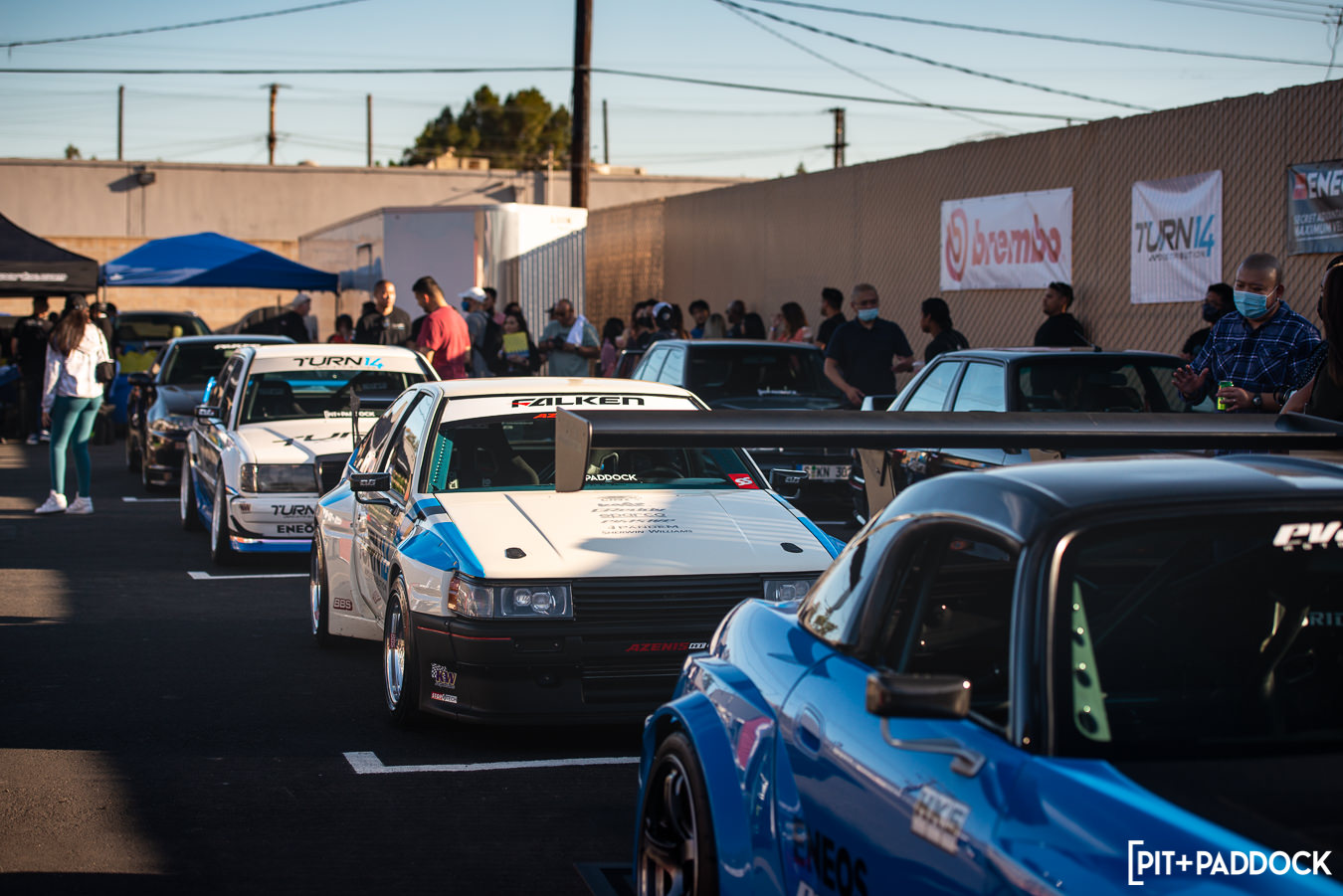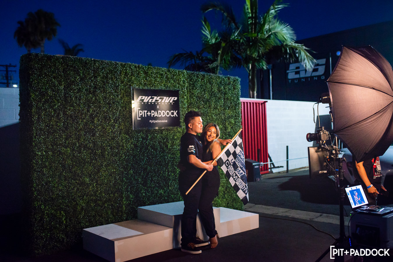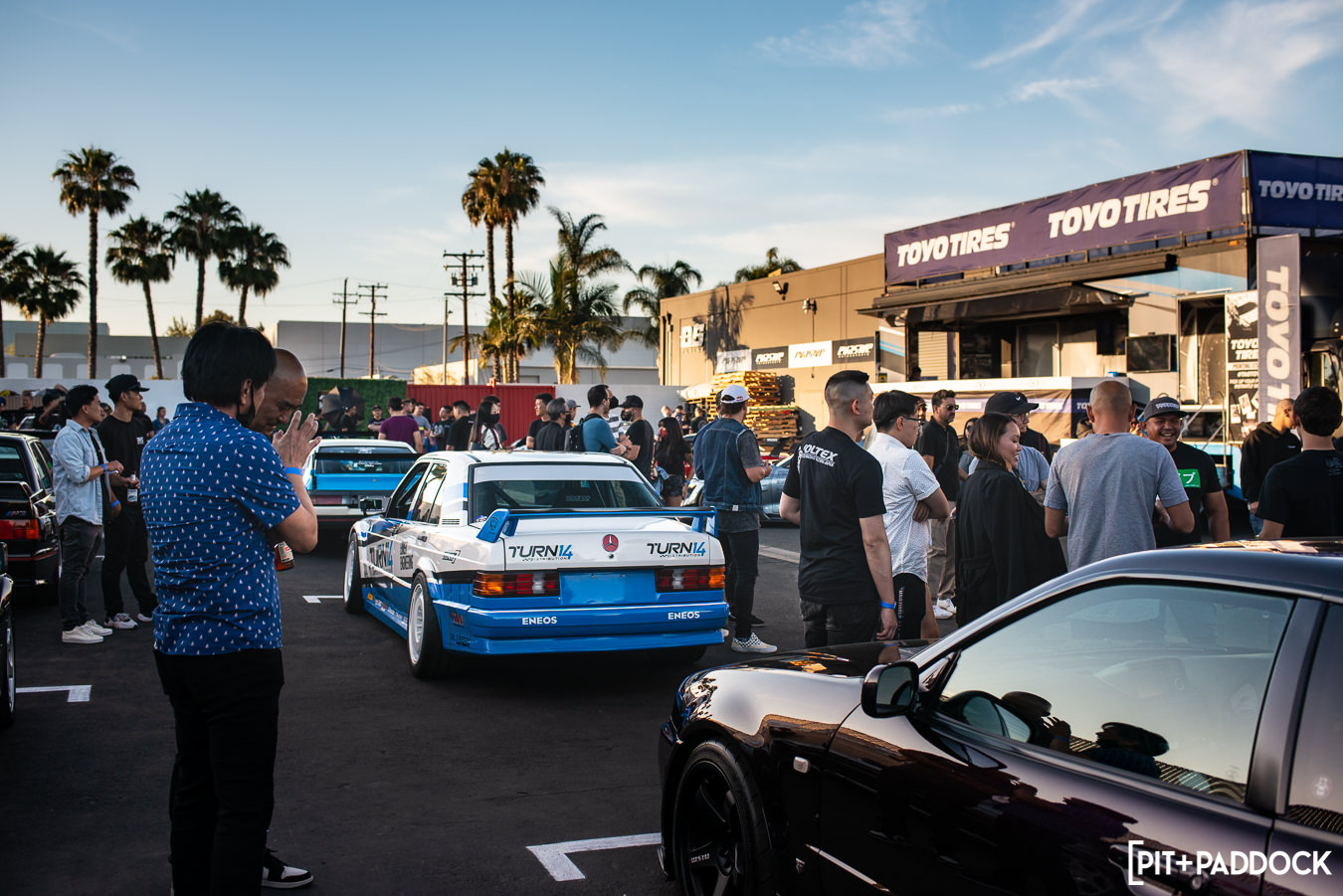 As guests made their way through the green grass-walled entrance installed for the day, they ran into many industry friends and guests on hand, which included the folks at ENEOS, Toyo Tires (thanks for bringing the Toyo girls and the rig out!), KW Suspension, CSF and more. There was also no shortage of auto influencers, either, with Dustin Williams, Emelia Hartford, RJ DeVera, Sara Choi, Ken Gushi, and more in the house. It honestly felt like a SEMA party more than an open house, and that is truly what made it feel special for Pit+Paddock and Evasive Motorsports to bring the community together.