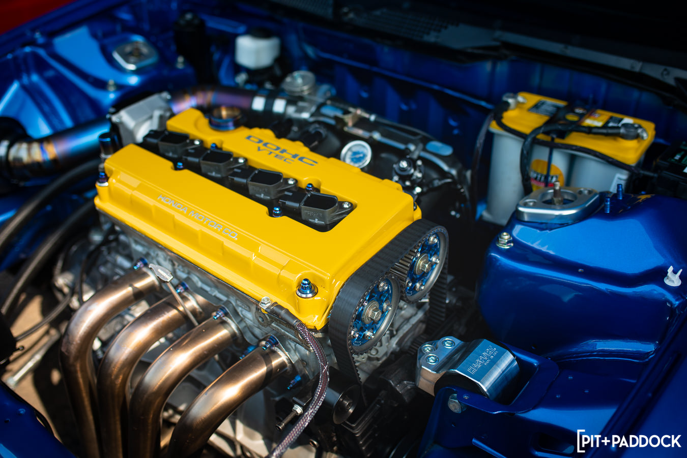 Whether it’s the SpeedFactory Racing additions scattered throughout, like the titanium hardware, tucked radiator, and coil-on-plug setup, or the B18C-swapped engine, this bay begs for attention, and we were more than happy to devote ours to it.