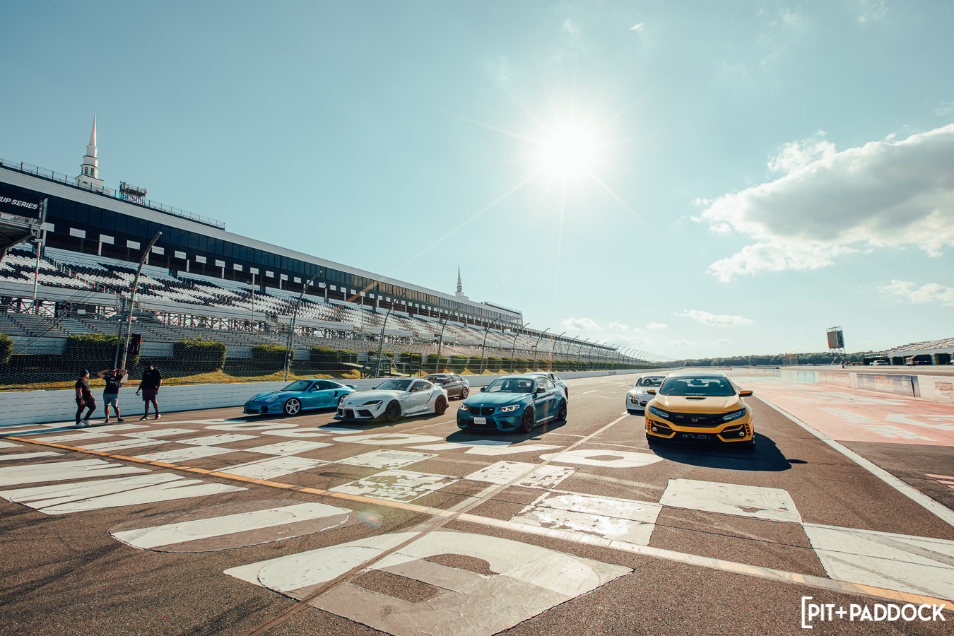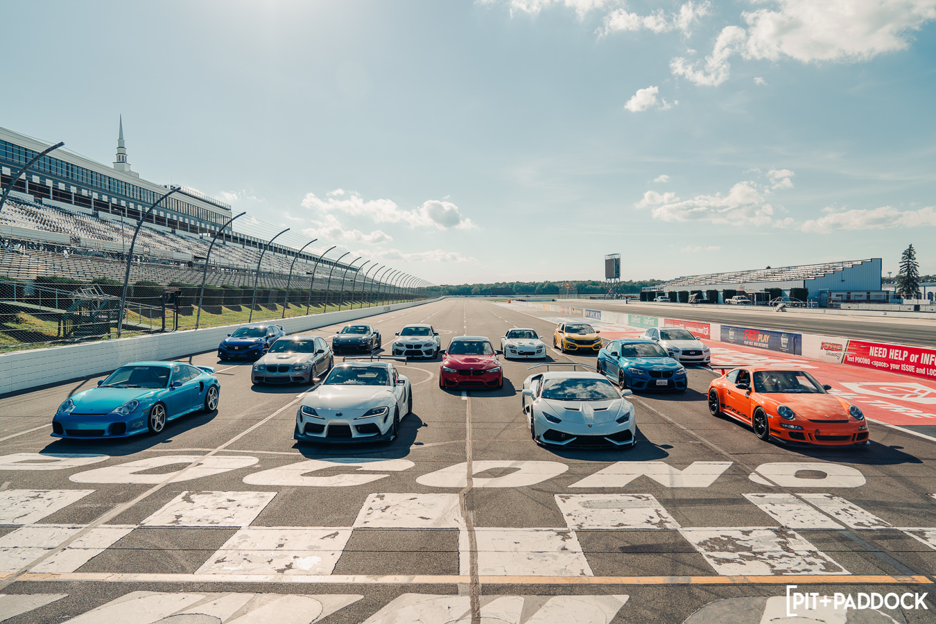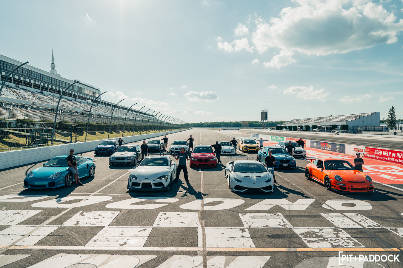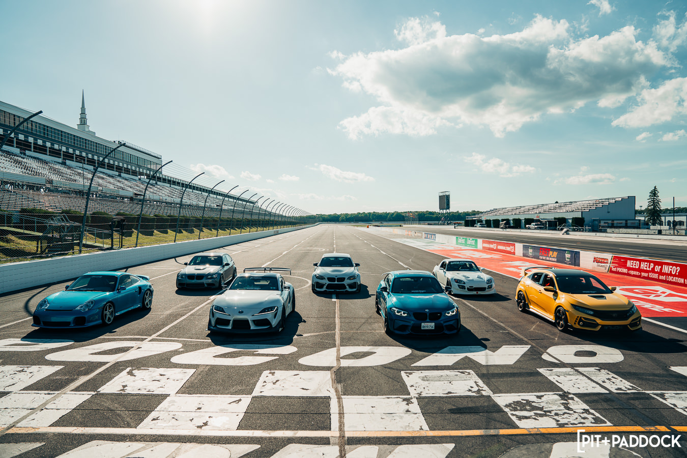 The last hour of the day concluded with group photos on the start/finish line, which looked absolutely epic as we were able to park cars five-wide and with the main grandstands in the background.
