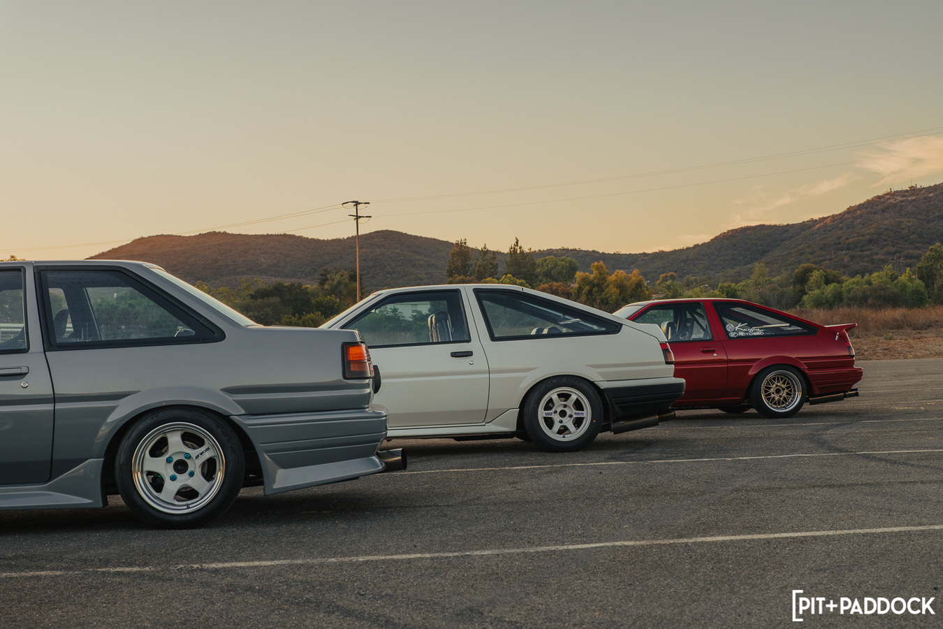 August 6th is a special day, not because it’s our birthday or a national holiday, but because in numerical form, the date is 8/6, which gives car guys a valid excuse to celebrate all things 86! Whether you’re a Toyota 86, GT86, Scion FR-S, or OG AE86 owner, 8/6 Day brings out the joy in every Toyota, with social media feeds flooded with tribute posts. Since this is the first year Pit+Paddock gets to observe 8/6 day, we decided to do something a little more unique and bring four AE86 owners together to tells us why they love the car so much. Each of the four project cars has a very cool story, but they also stay true to the roots retaining the 4A-GE inline-four and rocking legit JDM parts. To our surprise, they also had no problems enduring the 90-degree Southern California heat as well, as demonstrated by our sunny SoCal photoshoot. So enjoy our quick Q&A session with each AE86 owner here, and don’t forget to go out and have yourself a wonderful 8/6 Day!