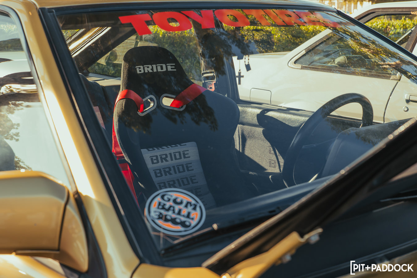 Specs: GT-S conversion, rebuilt 4A-GE, Run Free aero, Toyota 1H5 cement paint, 15-inch Work Meister wheels, Toyo R888R tires, Bride seats, carbon fiber interior trim
