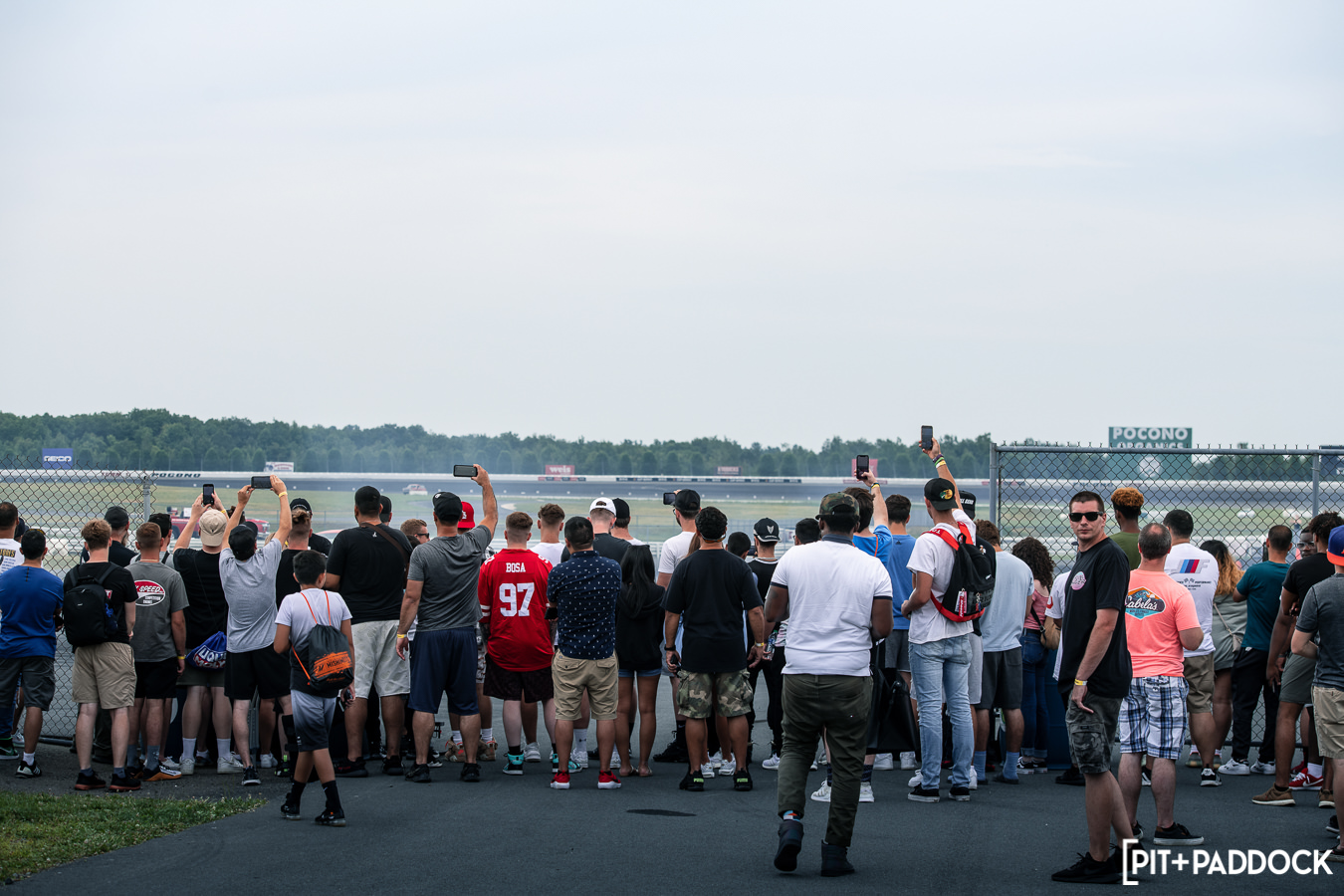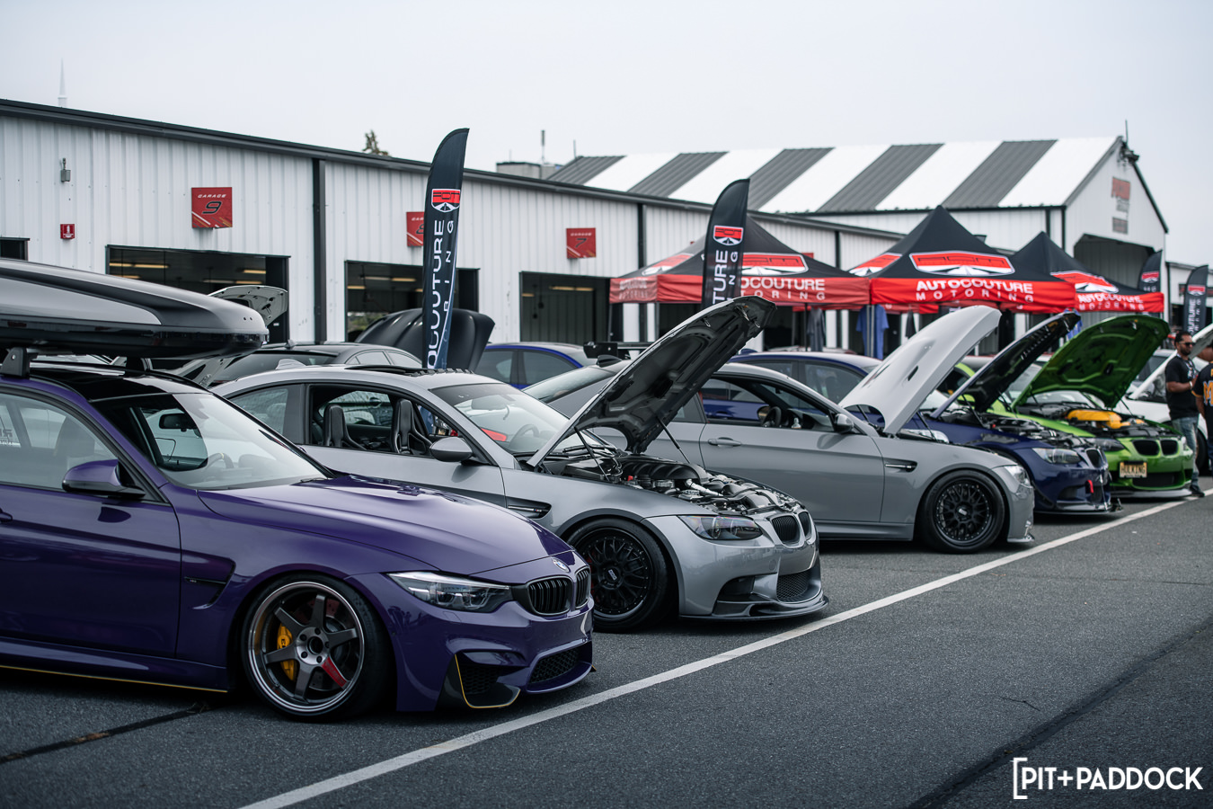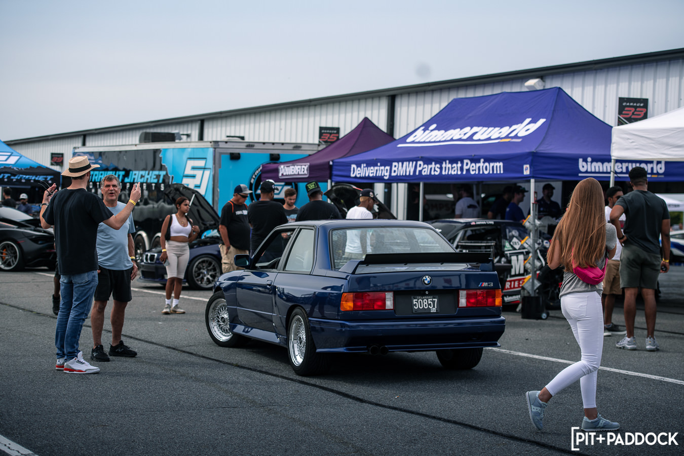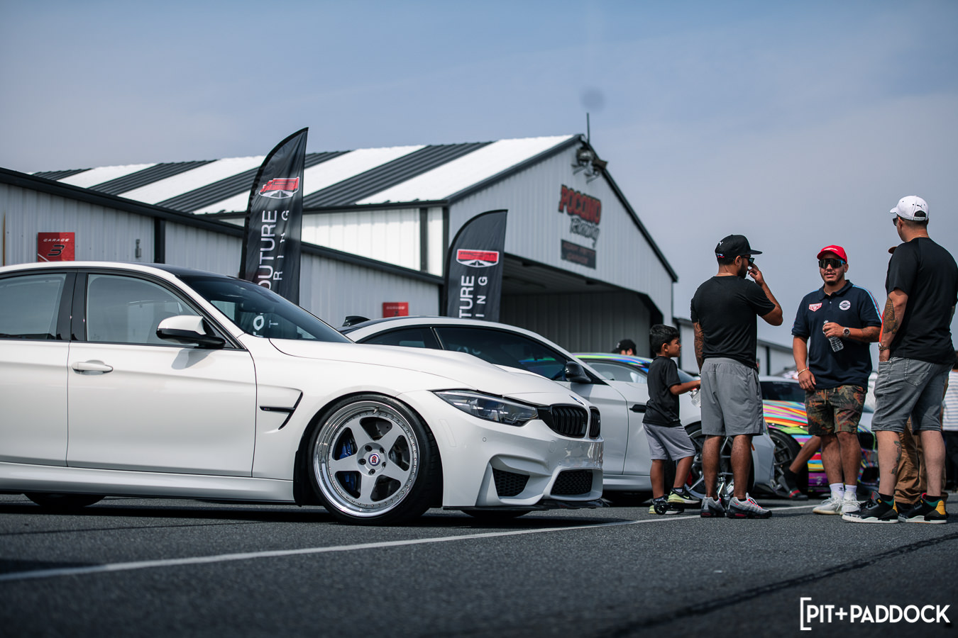 Like previous years, before any of the vendors were even finished getting set up, rows of cars quickly formed alongside the paddock area in preparation for roll racing. Taking full advantage of the dry weather and slightly cooler Pocono mountain temperatures, the track was busy all day with fans lining the pit lane to watch cars go head-to-head at speeds in excess of 170mph! At the same time, the guys participating in the NASA HPDE event and 14-year old drifter, Rhys Conklin, were enjoying the dry conditions as well. This year Rhys and his dad offered ridealongs to fans on the skidpad — Rhys in his LS-swapped #FunHaver E36 sedan and his dad in his LS-swapped Pandem/Rocket Bunny Nissan S13.