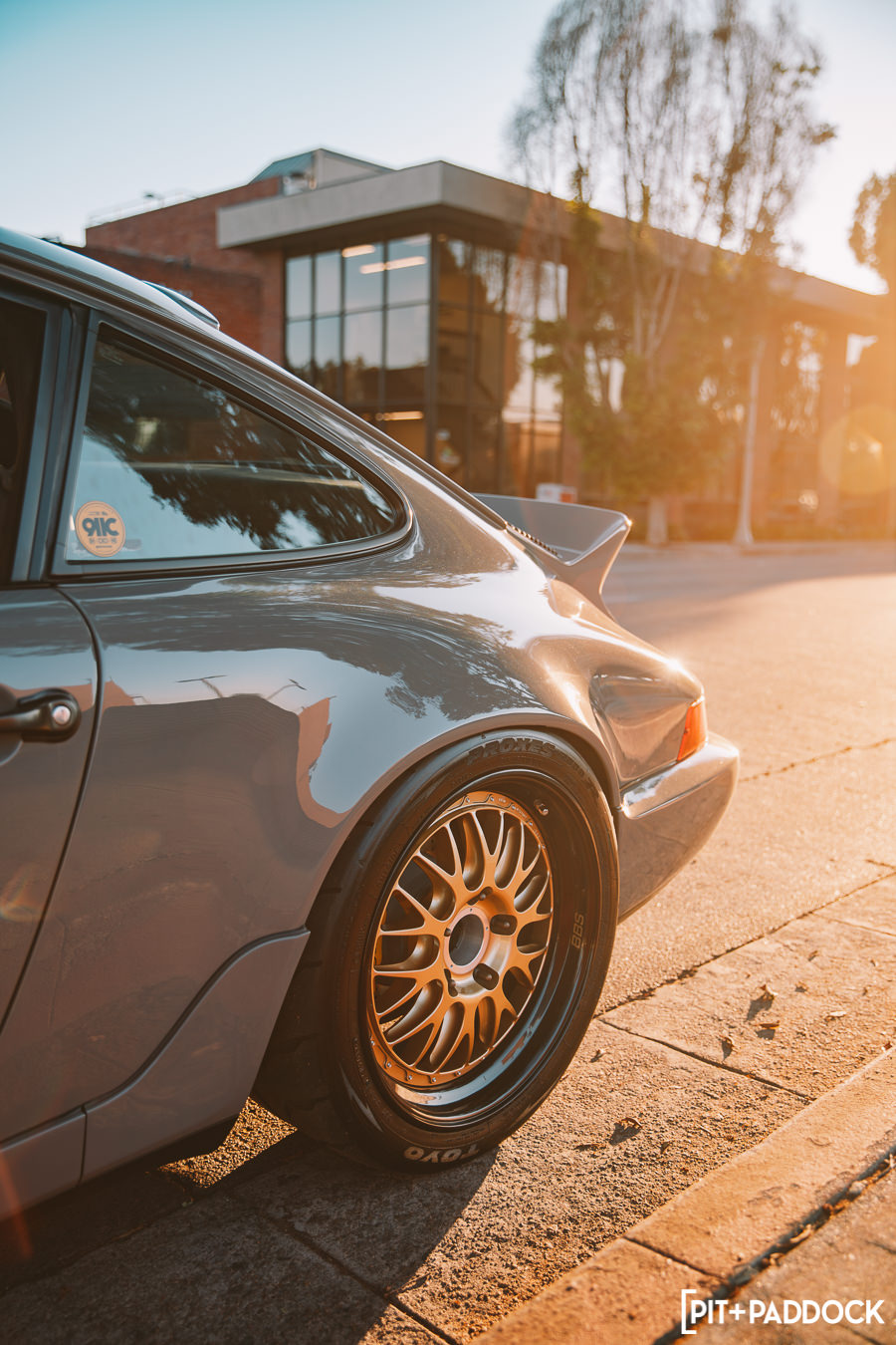 Yes, I do have three sets of BBS, actually four sets if you want to count the set on my E91 wagon. I can’t seem to find another brand of wheels that I would roll on my 964. BBS is probably the best-known and most respected high-performance motorsport wheel in the world. If it works on the track. It works for me on the street. They are all special to me in their own way. The classic E88 with gold centers and polished lips is the OG combo. My favorite setup is my custom-built E88s by Butzi Gear — brushed smoked clear centers with polished black lips. And for shits and giggles, I flip-flopped both sets and rolled out with gold centers with black polished lips. At this moment now, I’m rocking my smoked centers with polished lips. Finally, I have a set of E01s whenever I’m bored of my look. Haha!