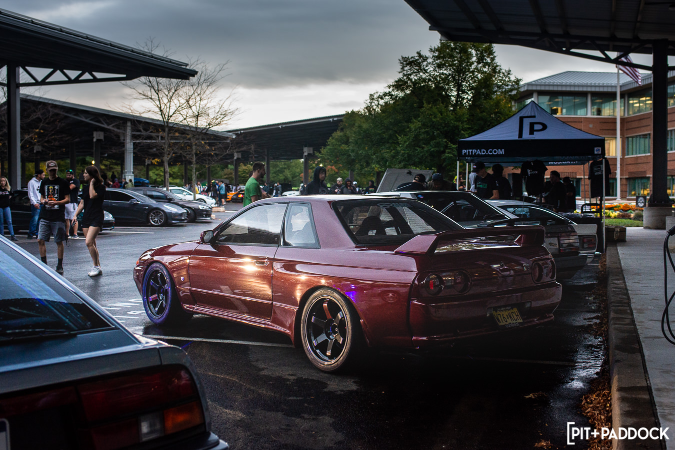 We tried valiantly to assemble a collection of Skylines and GT-Rs as the feature cars to really set off our final Horsham, PA event of the season. However, with thunderstorms forecasted during the very same hours we were throwing the event, many of them either couldn’t make the trip or needed to leave early (understandably so). I was surprised, however, that a handful of them stuck it out through the downpour, including this black R32 GT-R. The gold finish on the BBS LM wheels accented the clean black paint on the exterior and even matched the kevlar Zoom Monaco mirror inside. A few onlookers gathered while the owner opened the hood, and I was excited to see the well-kept engine bay featuring a Koyorad Racing aluminum radiator. According to the owner, there’s a whole mess of JDM engine parts set to find shelter within (or on) this RB26DETT, including a little more kevlar. We can’t wait for that.