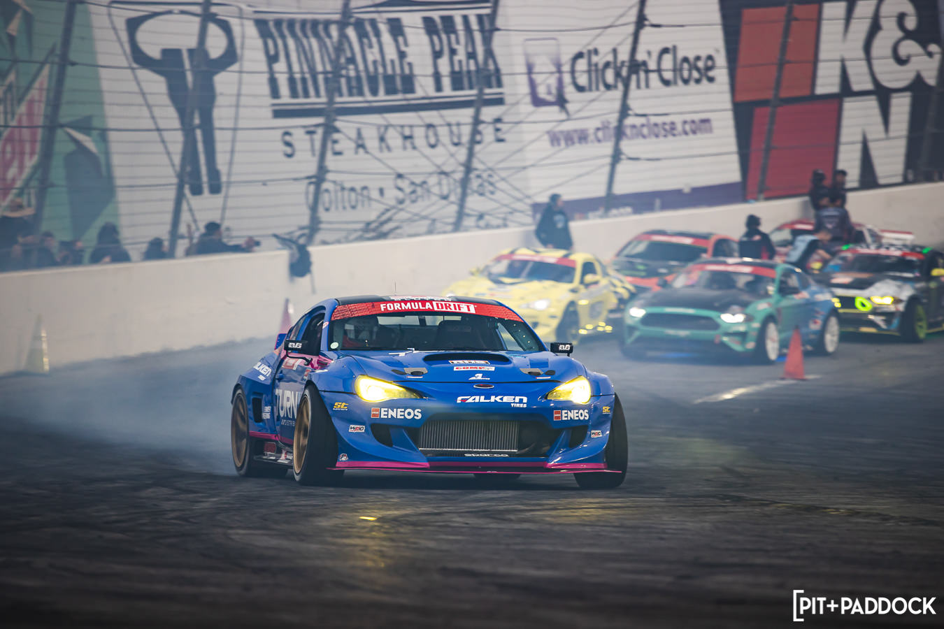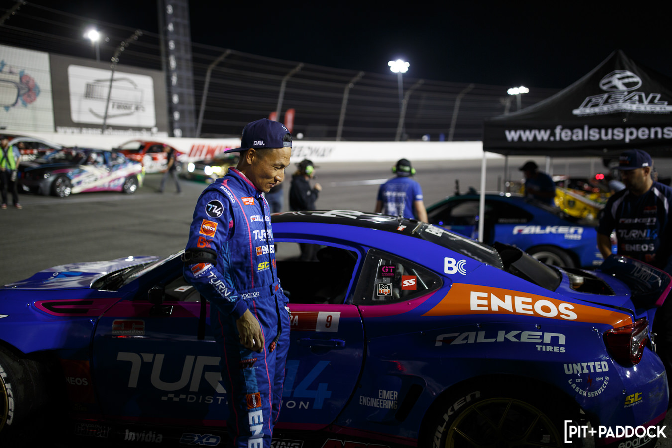“Thank you, Dai!” is what thousands of longtime fans yelled from the grandstands at the House of Drift after Dai Yoshihara had put up his last fight in a battle against Rookie of the Year Simen Olsen. It was a bittersweet ending as Dai undoubtedly wanted to put on a good show after qualifying 7th overall at Irwindale Speedway in what would be his last hoorah as a competitor in Formula DRIFT; however, a tough chase run led to an early exit in the round of Top 32. Despite this, the love and support for Dai was through the roof as he waved farewell to what was an unforgettable career in FD, having battled against the greatest drivers in the sport for 18 years and in 128 total rounds. Dai’s FD career is highlighted by winning the 1st overall championship in 2011, an achievement that only ten drivers have obtained since FD started in 2004. He will also be remembered in the drift world by the vehicles he piloted, from the Pacific Rim Motorsport Nissan S13 Silvia to the Discount Tire/Falken Tire Nissan 240SX and, of course, the Turn 14 Distribution Subaru BRZ.