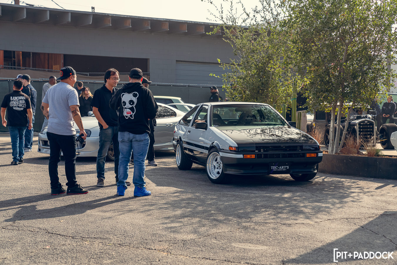Outside is where all the magic was happening, though, as hundreds of people gathered to check out our curated collection of SEMA vehicles. Three Pit+Paddock booth cars were on-hand, including Riley Stair’s 1970 Pontiac Trans Am, Rywire’s EV-swapped Honda S2000, and Dai Yoshihara’s F22C-powered Mercedes 190E. In addition, we showcased Top Rank’s NISMO 400R, Mastermind/Tec-Arts immaculate AE86, the CSF 911, Leen Customs‘ Hakosuka sedan, Peter Chrisikopoulous‘ S13 drift car, and the one and only GR Yaris on American soil. If that wasn’t enough, other heavy hitters like Mike Burroughs of Stanceworks’ Ford Model A and Scott Birdsall’s famous “Smokey” diesel truck made guest appearances.