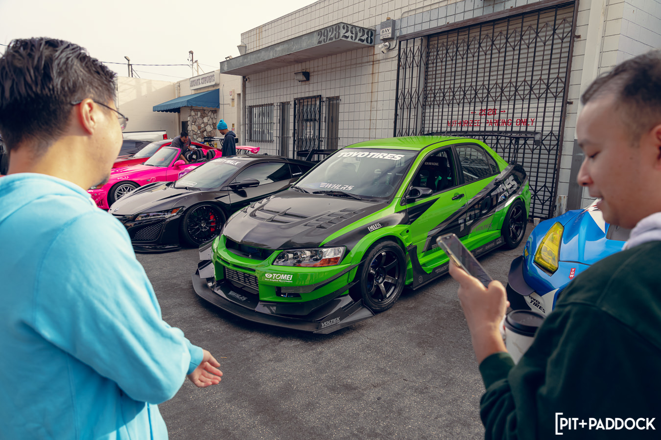 The stage was set at the new Brekkie Car Club headquarters in Elysian Valley, Los Angeles – just a few minutes from Dodger Stadium. We had reserved the entire compound, accommodating about 150 cars, but we quickly learned that that wasn’t enough space. Luckily with the event happening on a Saturday morning, all the nearby businesses were closed for the day, which enabled more than adequate street parking.