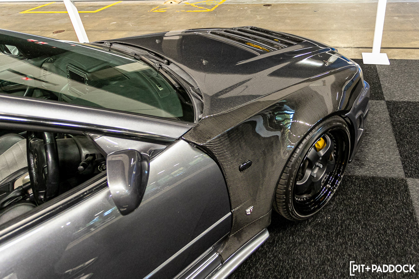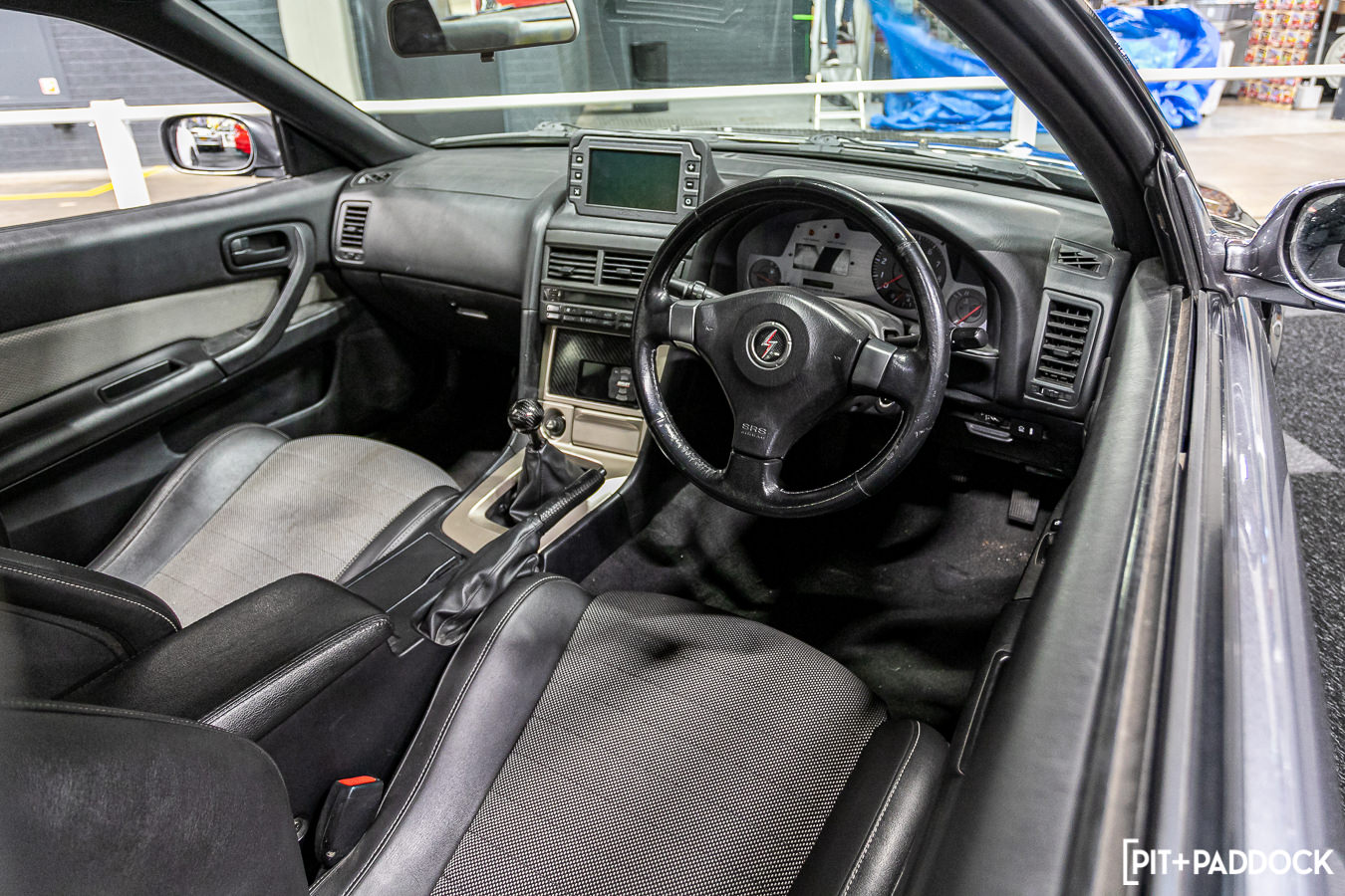 Originally a rear-wheel-drive and single-turbo GTT model, the owner of this R34 Skyline has gone to great lengths to make it look and perform like a GT-R with a 500hp RB26 engine swap. In addition, he’s thrown in some sweet parts like a Tommy Kaira digital dash, 19-inch Work Meister wheels, loads of Seibon carbon fiber, and the exterior is finished off in Lamborghini Grigio Estoque paint.