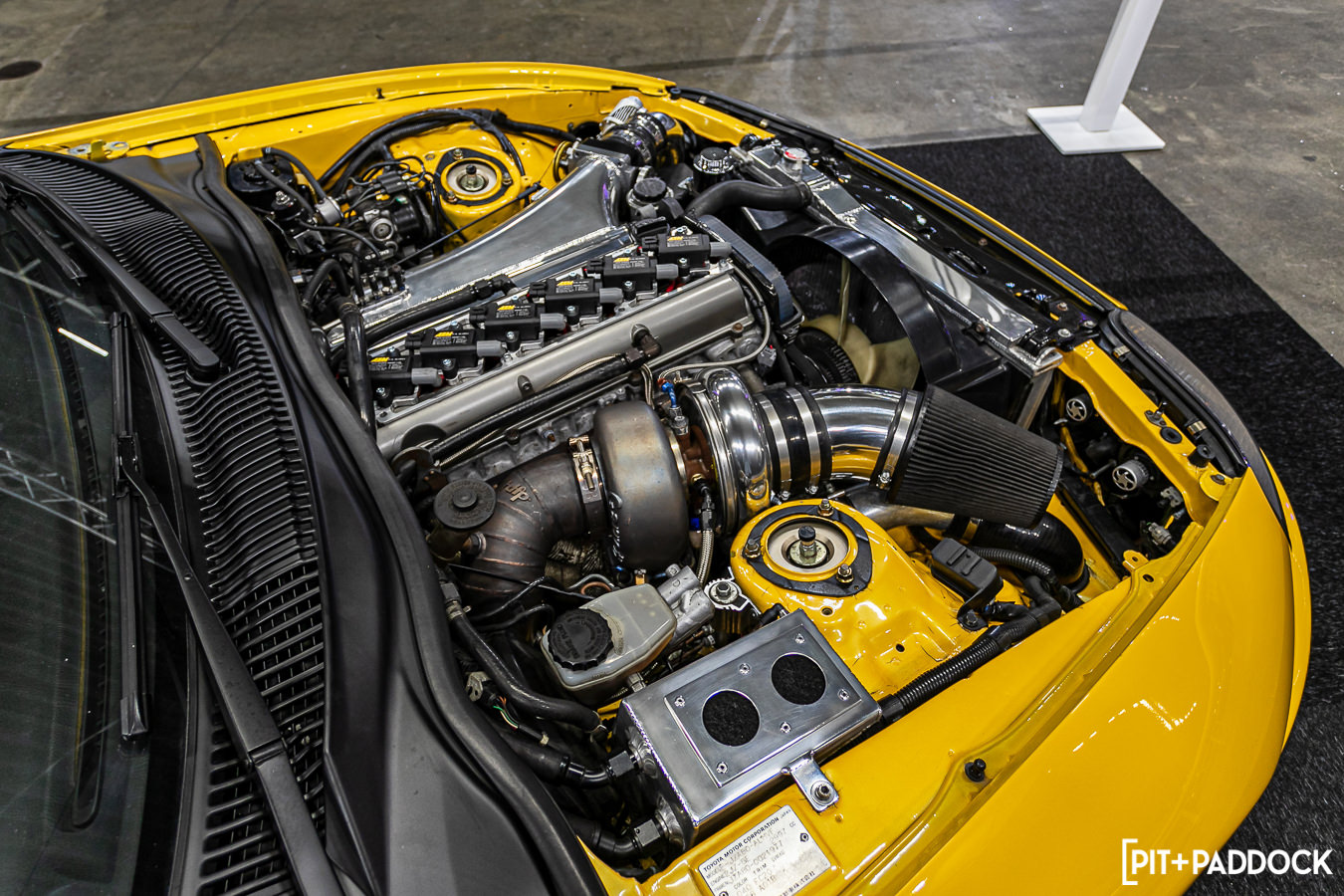 I don’t want to mess with this Mk4 Supra on the streets as the bay packs a 1,200hp 3.4-liter 2JZ stroker engine, along with AEM Performance Electronics goods to spice up the ignition.