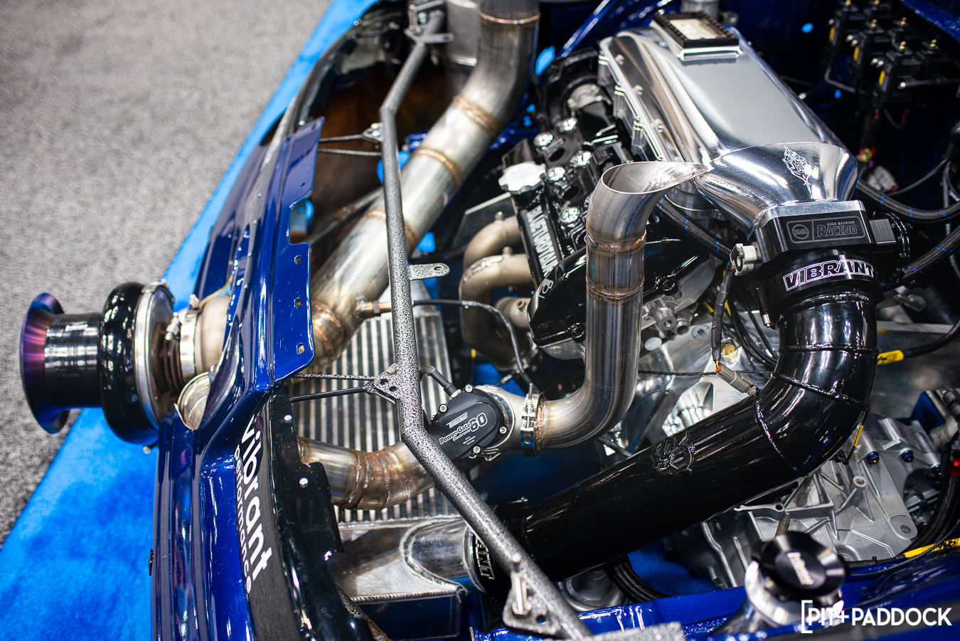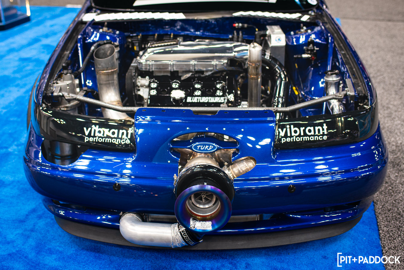 This SHO is not your mom’s old Taurus, or maybe it was at one time? We can’t be sure, but we do know that this has to be the most badass Taurus on the planet. In its previous state, before going under the knife for the PRI show, it generated around 1,000hp. It has since been outfitted with this new center-mount turbocharger, billet engine block, newly-fabricated Vibrant Performance elements, and offerings from AEM Performance Electronics and Turbosmart in the engine bay. It boogies, too. In its old spec, it successfully eclipsed the 8-second elapsed-time barrier. Now looking to churn out 400-600 more horsepower this time around, we can’t wait to see what’s in store for the Blue Turd in the future. Whatever it may be, it’s going to be fast!
