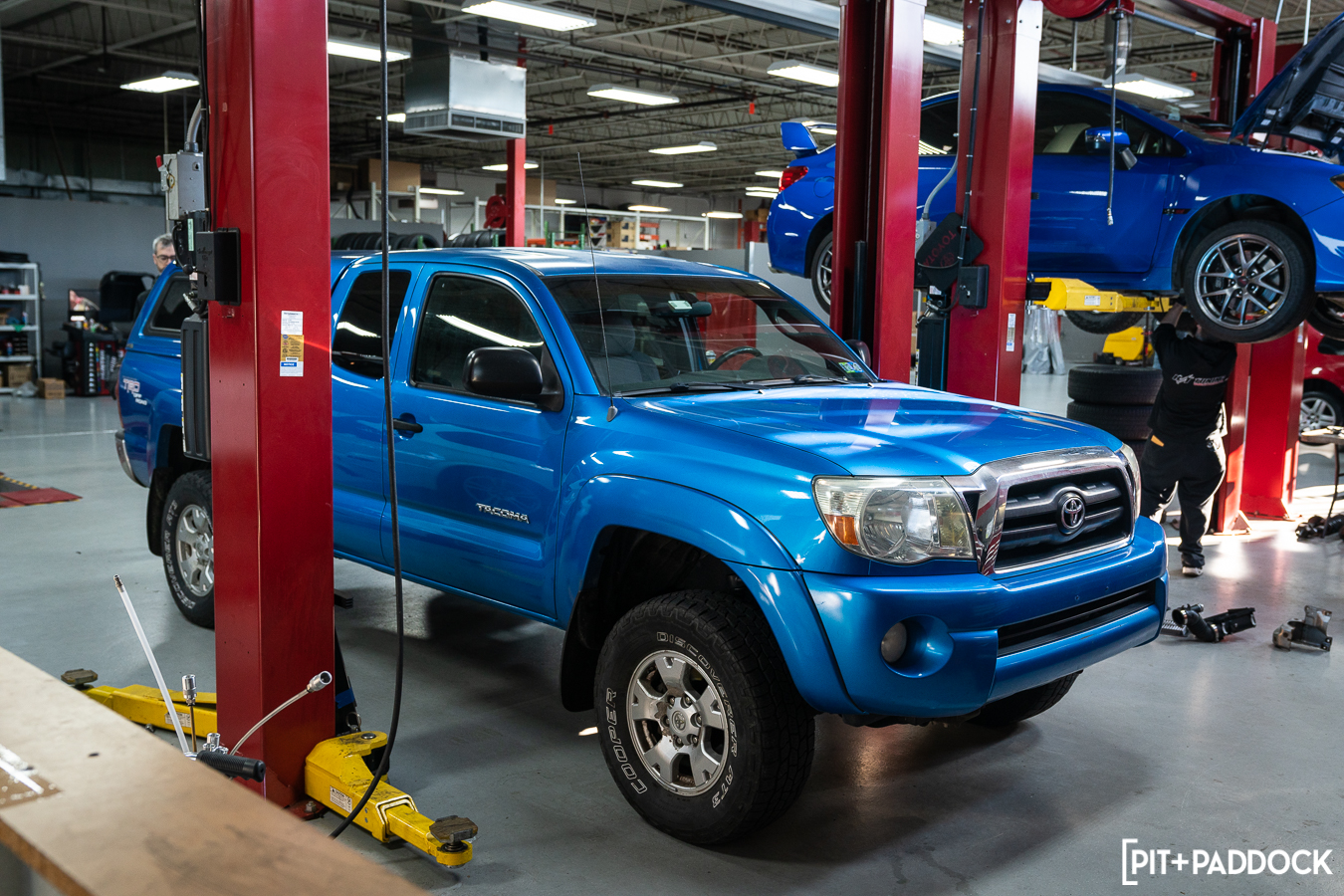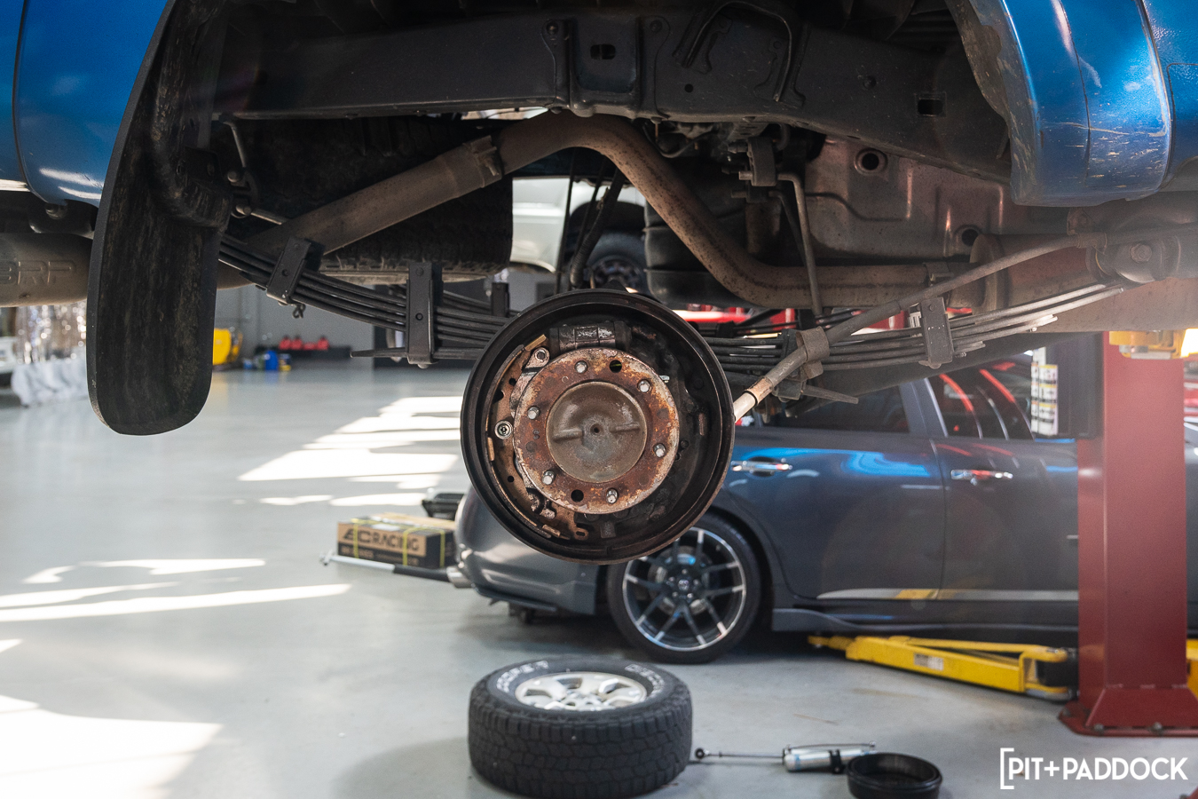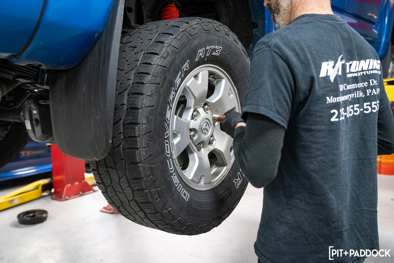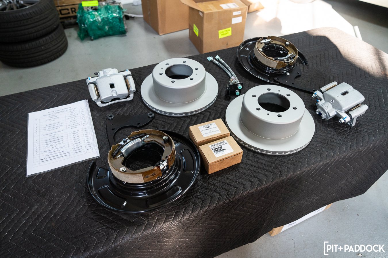There are a few different choices for hopeful buyers in the compact pickup truck segment. There are offerings like the new Ford Ranger and the Colorado from Chevrolet, but the most popular, by far, is the Toyota Tacoma. All three are offered in varying cab and bed combinations. All three can tow at least 6,800 pounds, and all three come equipped with four-wheel disc br — wait, no, they don’t. The Tacoma still has rear drum brakes. Yep, after multiple iterations, even the newest TRD Pro models don’t even have rear disc brakes, and Toyota isn’t keen on changing it any time soon. If you’re a prospective Tacoma buyer and the rear drums are holding you back from making a purchase, or if you’re a current Tacoma owner looking to upgrade, we’ve got some news for you. Pedders Suspension & Brakes — the Australian aftermarket automotive specialists — produces its TrakRyder Rear Disc Brake Conversion Kit (PED-PBCK006) specifically for the 2005-2021 Toyota Tacoma! We caught up with our friends over at R/T Tuning in Montgomeryville, PA, during a recent installation so we can showcase what this conversion to rear disc brakes is all about.