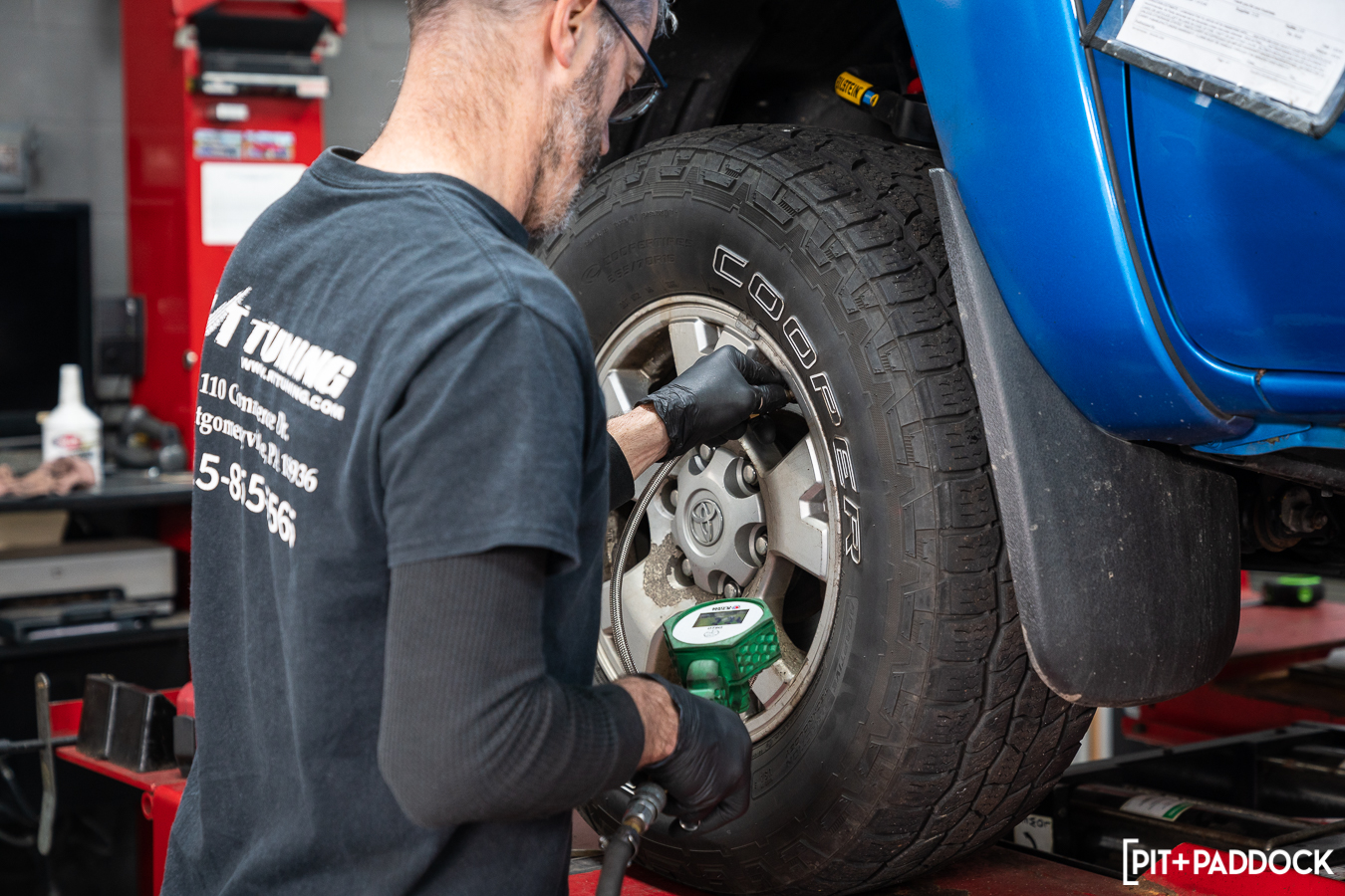 As with any suspension install, Pat pulled it onto R/T Tuning’s in-ground flat alignment rack, adjusted arms to their proper straight measurements, retorqued, and went for a test drive.