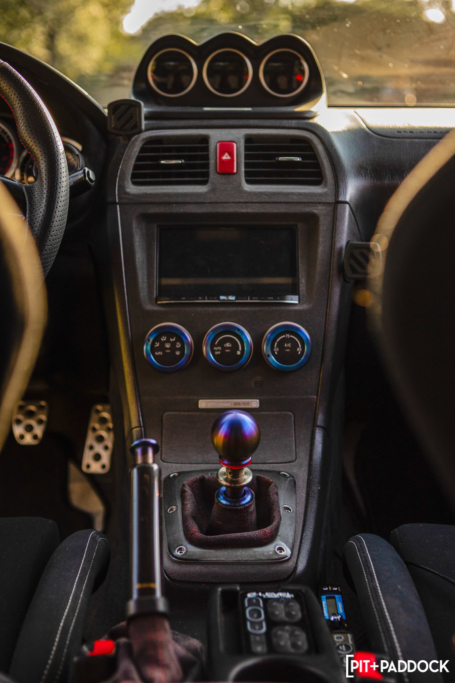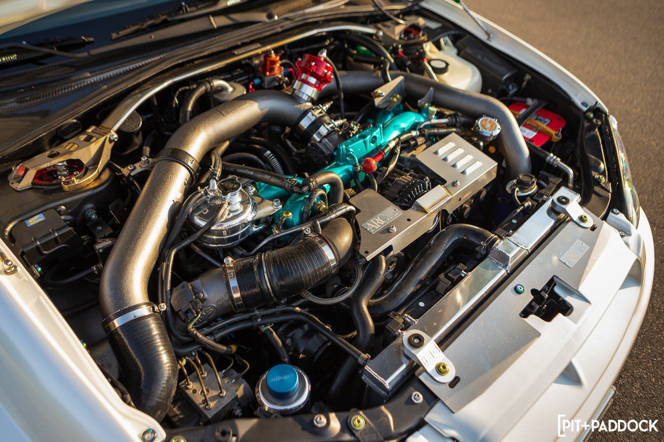 Now, at this point, you might be asking yourself, “I see the ‘show,’ but where’s the ‘go’?” Don’t worry. Joe’s addressed that, too. Fitted to the factory 2.5-liter Boxer engine is an FP Green turbo and all the necessary supporting mods, including APS plumbing and a Blitz radiator. Tuned via a COBB V3 Accessport, the flat-four puts down a modest 411 wheel horsepower and 430 lb-ft of torque.