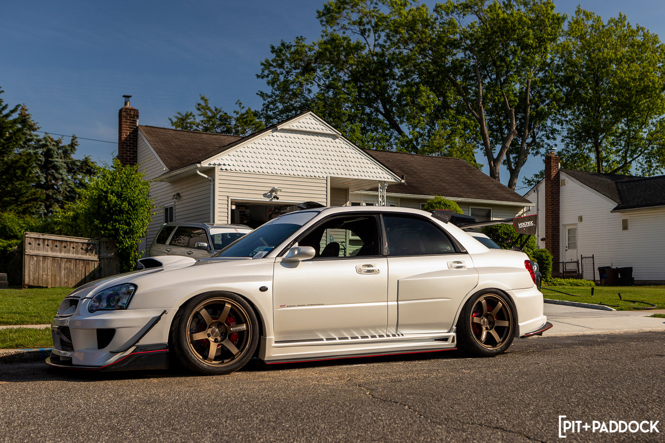 - New York-based Joe Tobias transformed his previously World Rally Blue STI into a modern-day show-stopper with an M Sports widebody, TE37SAGA wheels, and Lexus Eminent Pearl White repaint.