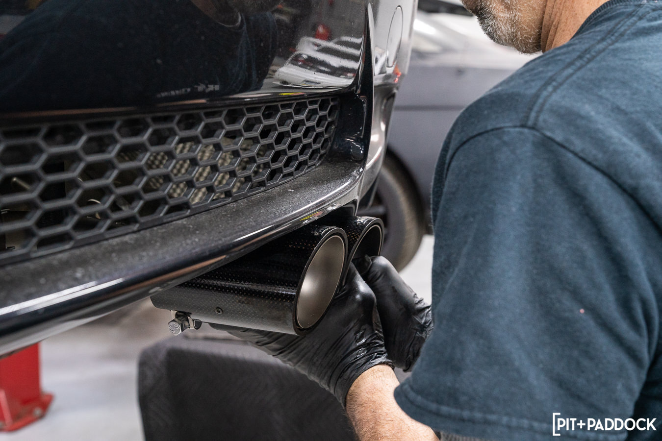 The final piece of the puzzle was the carbon fiber exhaust tips. With each of the four fastened in place on their respective exhaust outlets, the installation was complete, and the car was ready for its maiden voyage expelling its enhanced growl upon startup. We’ll have more on this project soon! Follow along here and on our Instagram, Facebook, and YouTube channels to avoid missing a second of this unique build.